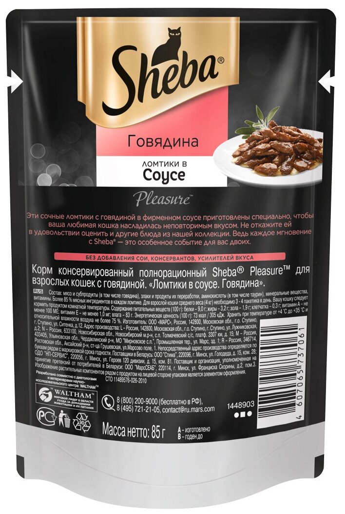 СохранитьSheba Паучи для кошек ломтики в соусе говядина 10244551 0,085 кг 36277 (2 шт) интересное: