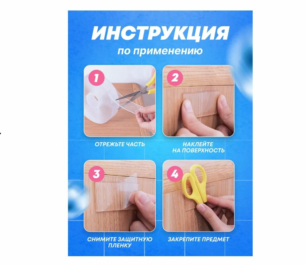 Многоразовая прозрачная двусторонняя клейкая лента 5м. Х 3см. интересное: