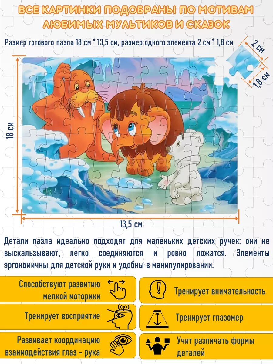 Купить 20+2 в подарок набор пазлов для детей мульт и сказки 54 дет