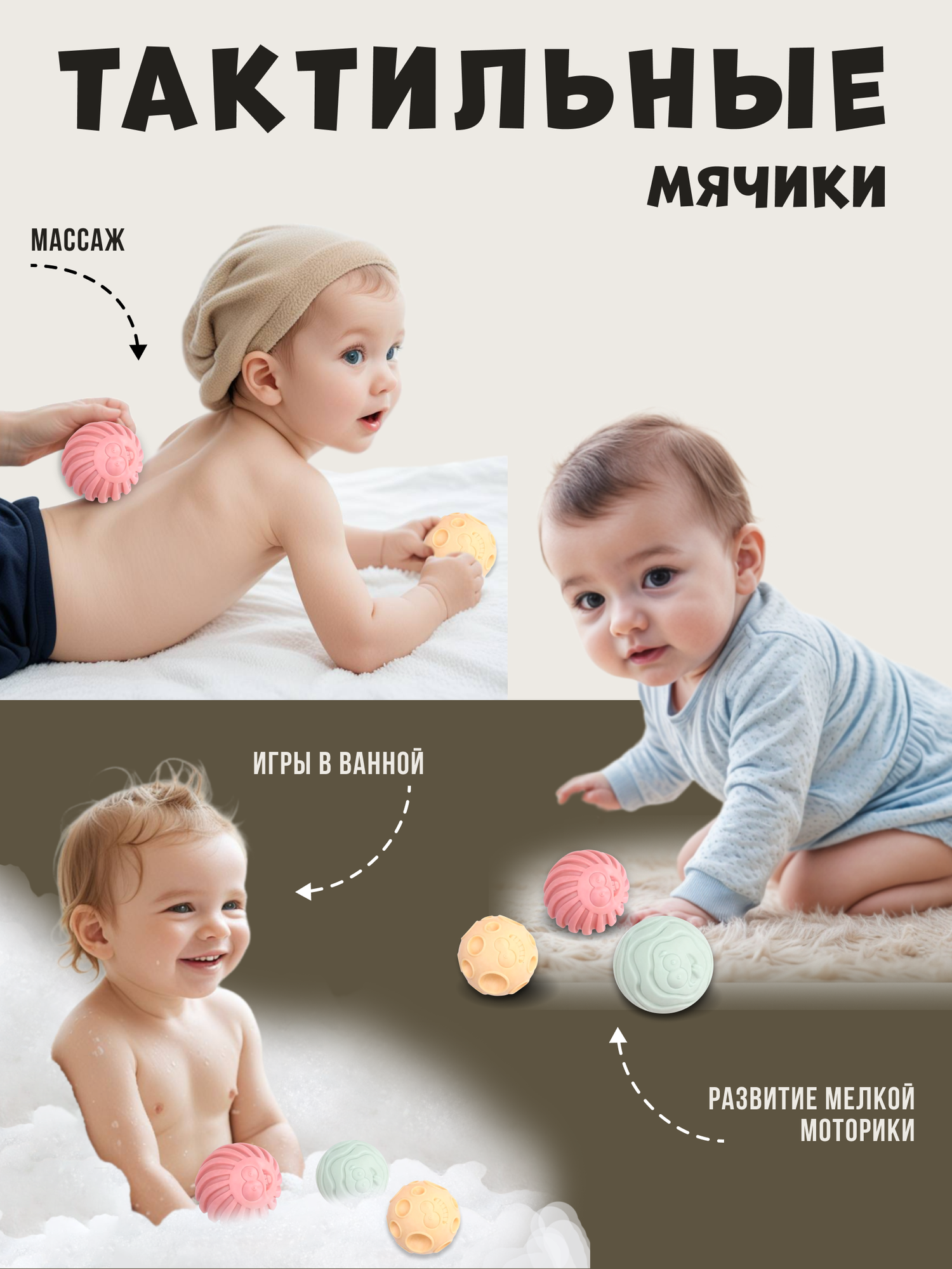 Купить Мячики 6,5 см тактильные массажные для развития мелкой моторики малышей, игрушки для купания 3 штуки