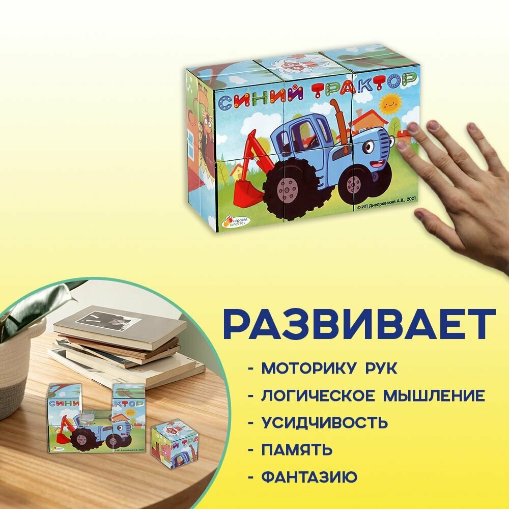 Кубики для малышей Синий трактор развивающие Играем вместе / кубики детские пластиковые 9шт