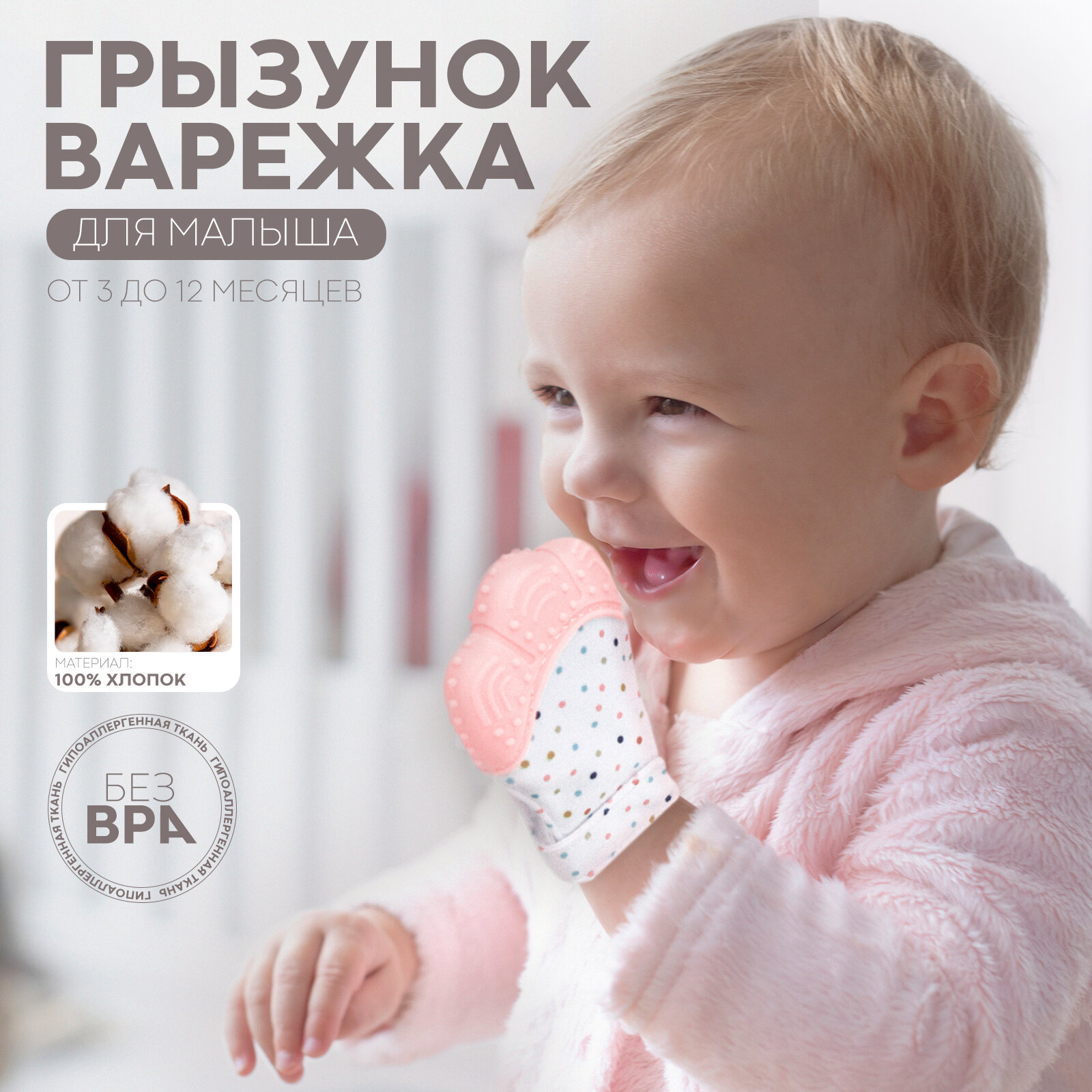 Грызунок варежка массажёр дёсен на руку, бренд Картофан, розовый интересное: