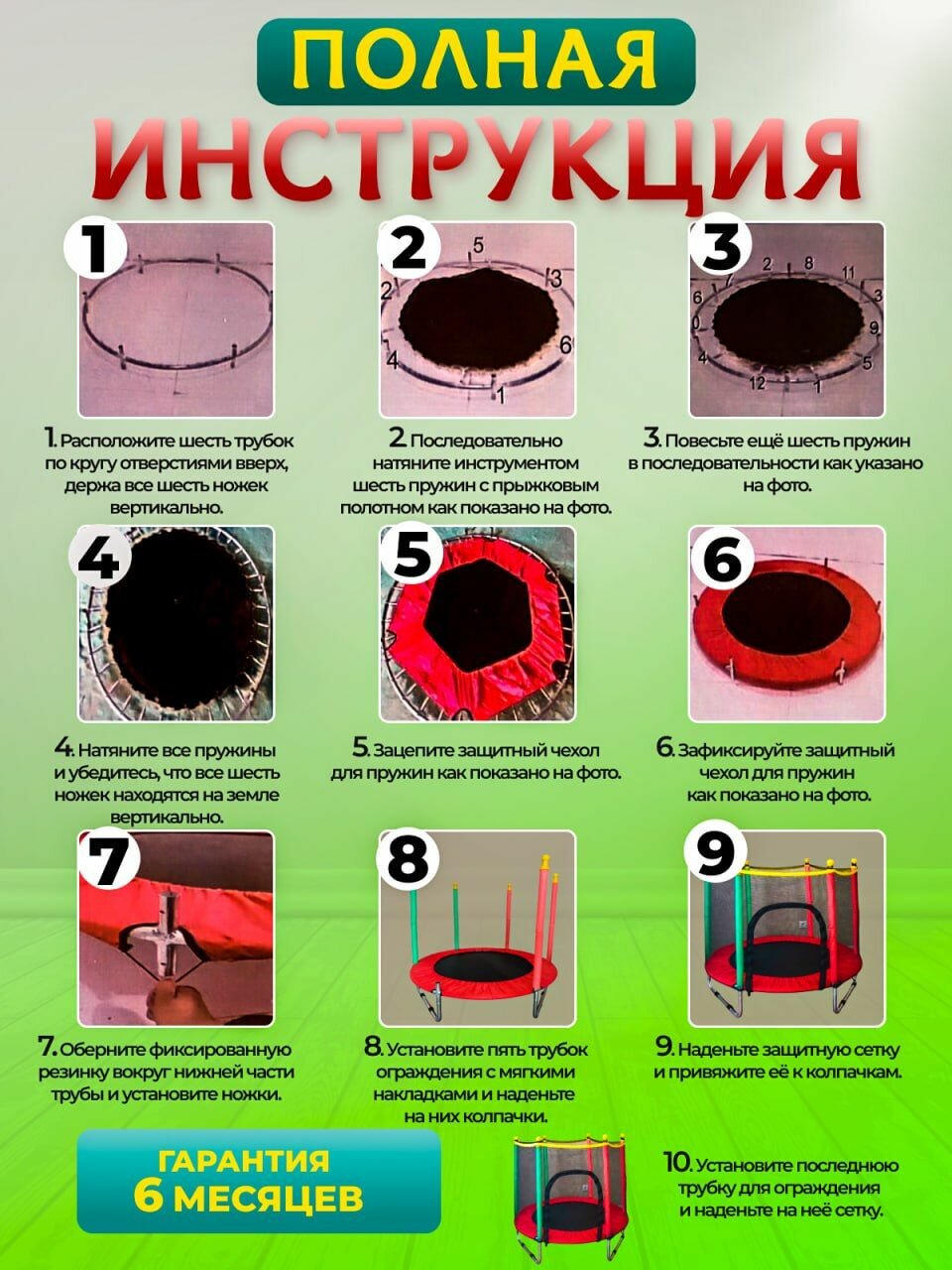 | Состав набора | защитная сетка, батутное полотно, ножки, крепеж |