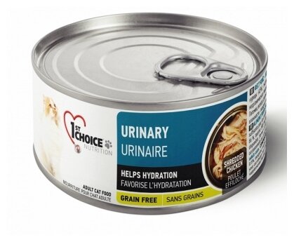 1st Choice Urinary Консервы для взрослых кошек для профилактики мочекаменной болезни (курица с клюквой), 85 гр, 24 штуки
