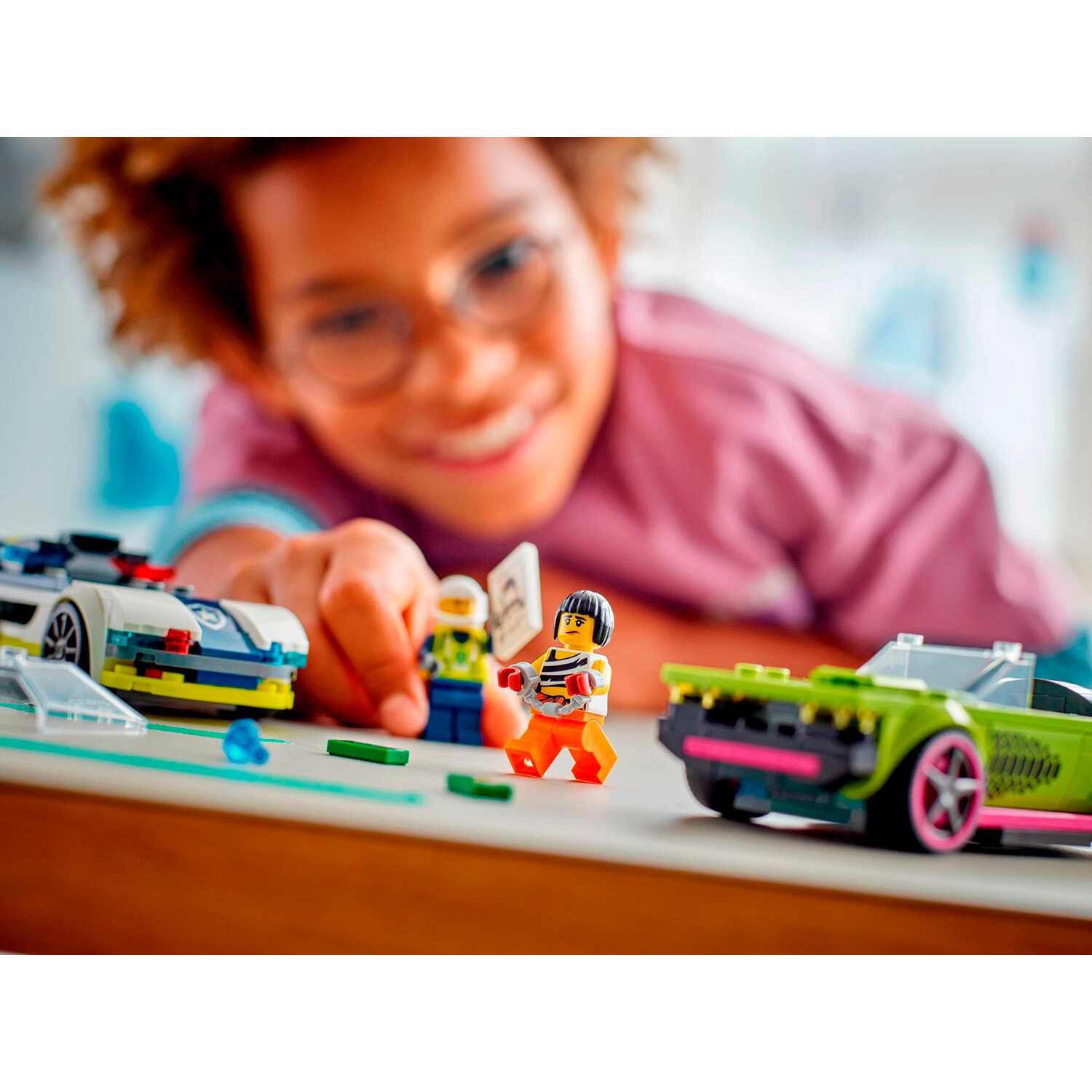 Конструктор LEGO® CITY 60415 POLICE CAR AND MUSCLE CAR CHASE интересное: