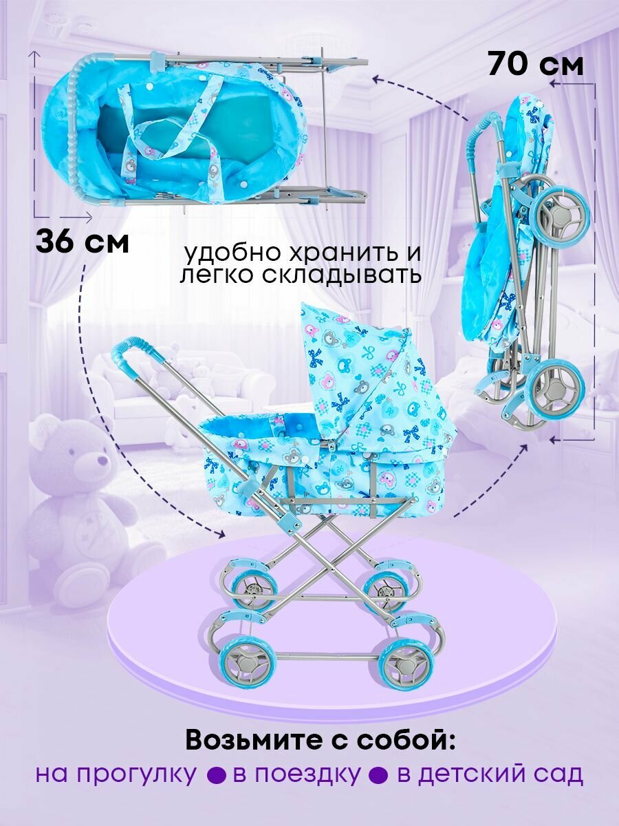 Коляска для кукол с люлькой 64х35.5х73см. Коляска для пупса. Подарок девочке. Для игрушки размером 25-40см 9308WA интересное: