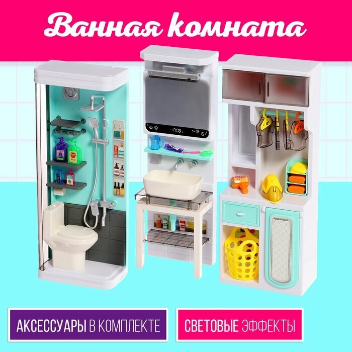 Набор мебели для кукол "Ванная комната": санузел, раковина, гардеробная интересное: