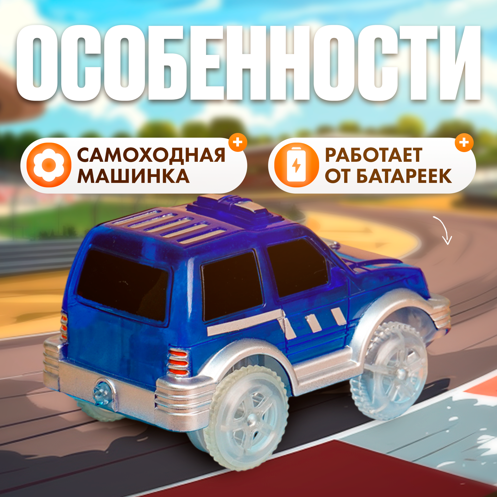 Машинка самоходная для гибкого автотрека Magic Tracks, светятся фары, цвет синий