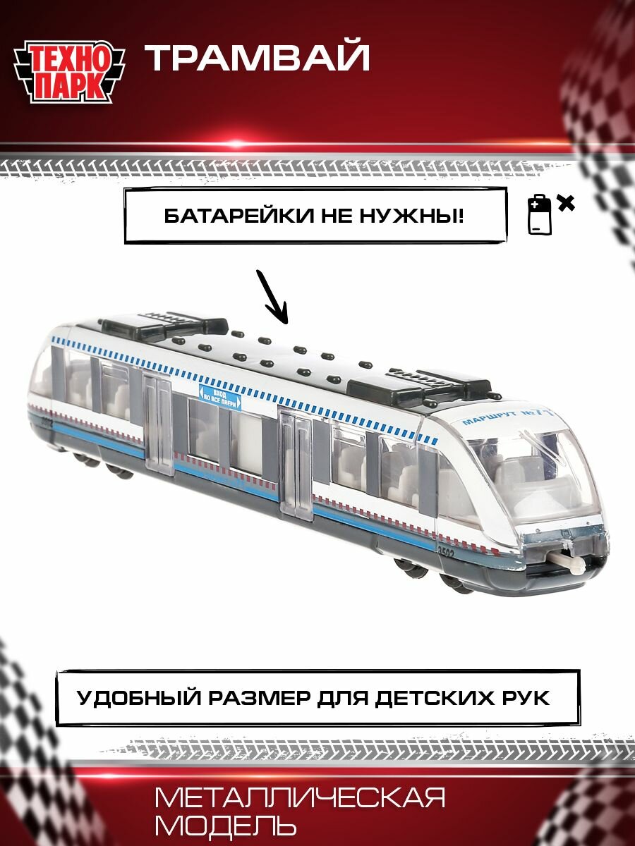 Машинка детская Трамвай белый, Технопарк, металлическая, 16,5 см интересное:
