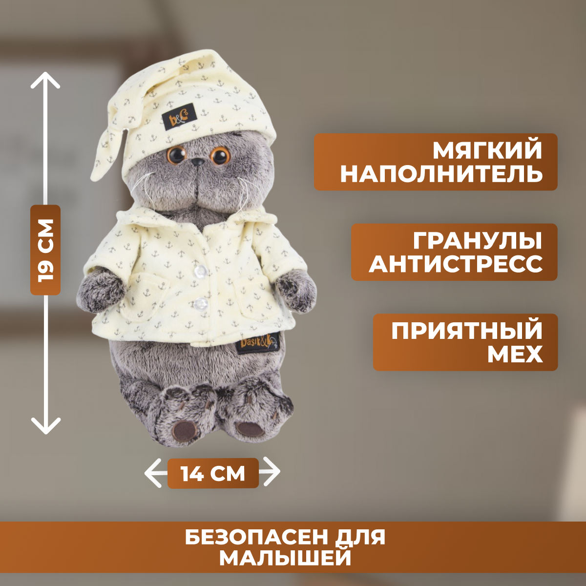Мягкая игрушка Basik&Co Кот Басик в пижаме, 19 см, BUDIBASA