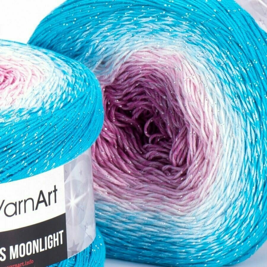 Пряжа YarnArt Flowers Moonlight бирюза-белый-розовый-цикламен (3294), 53%хлопок/43%акрил/4%металлик, 1000м, 260г, 5шт