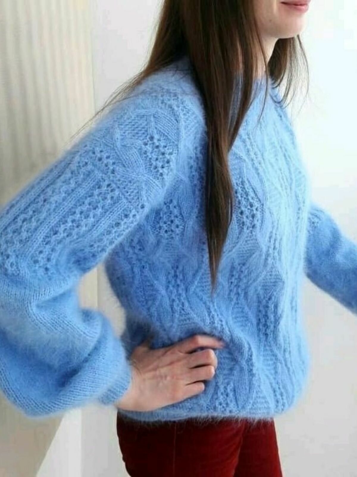 Пряжа Пух норки - 5 мотков 50гр/350м + 5 мотков добавочной нити, цвет 826 нежно- голубой, синяя этикетка