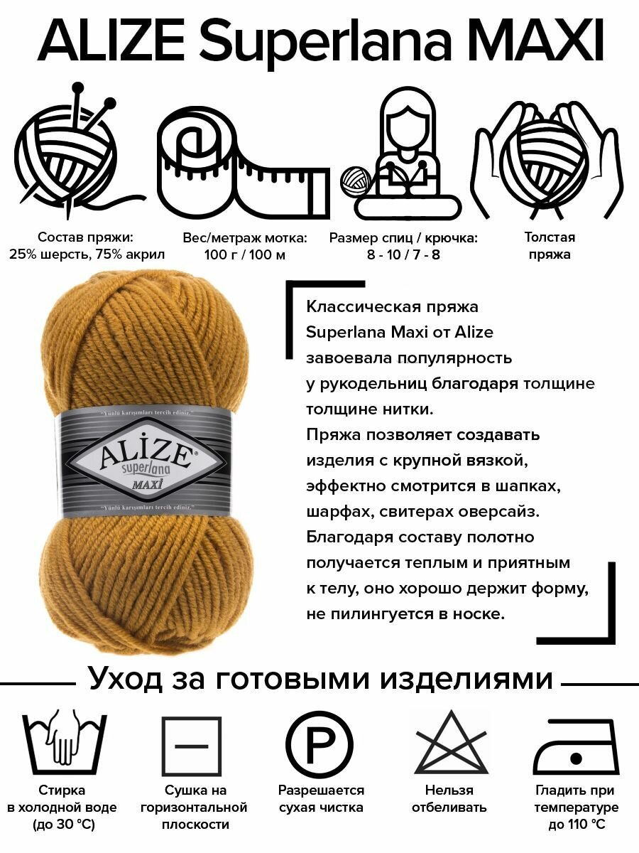Пряжа Alize Superlana Maxi шафран (02), 25%шерсть/75%акрил, 100м, 100г, 1шт