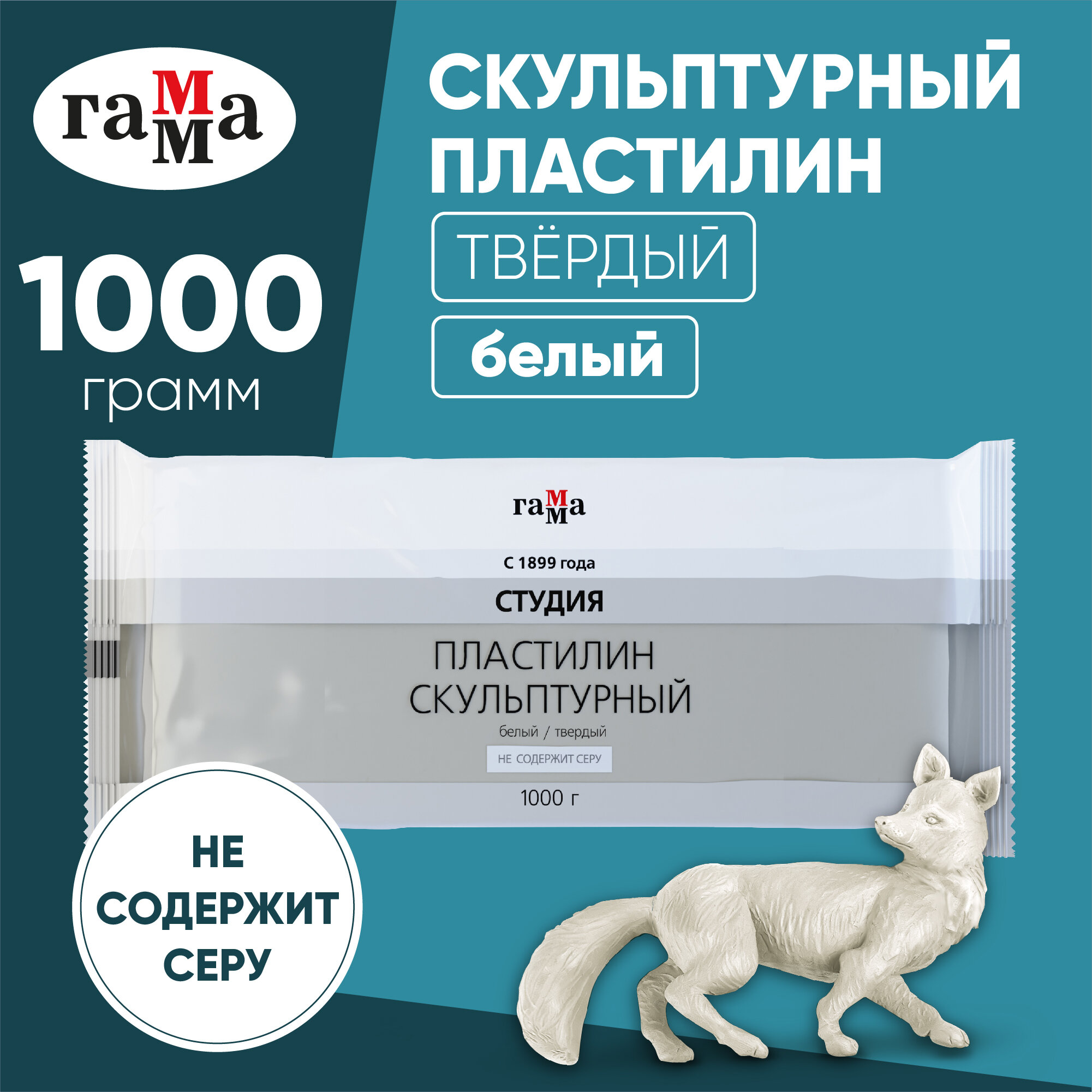 Пластилин скульптурный белый, твёрдый, 1000 г, Гамма Гамма 3847377 .