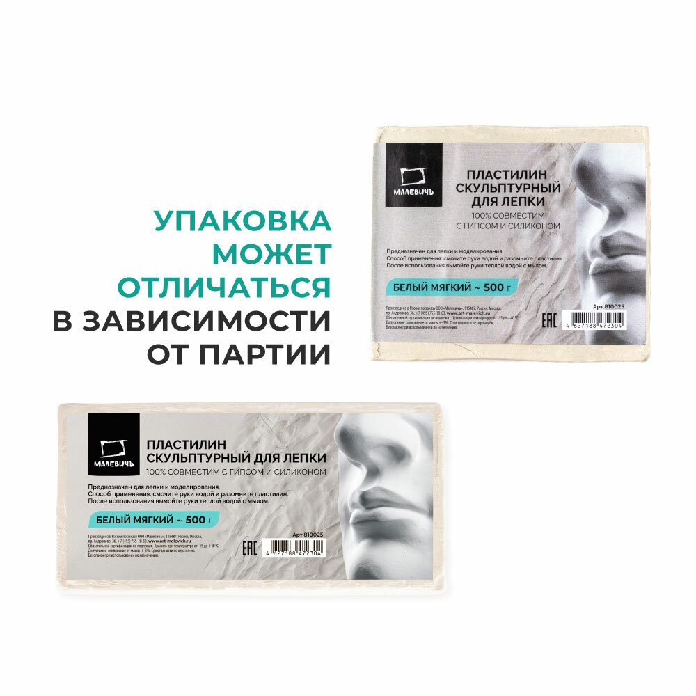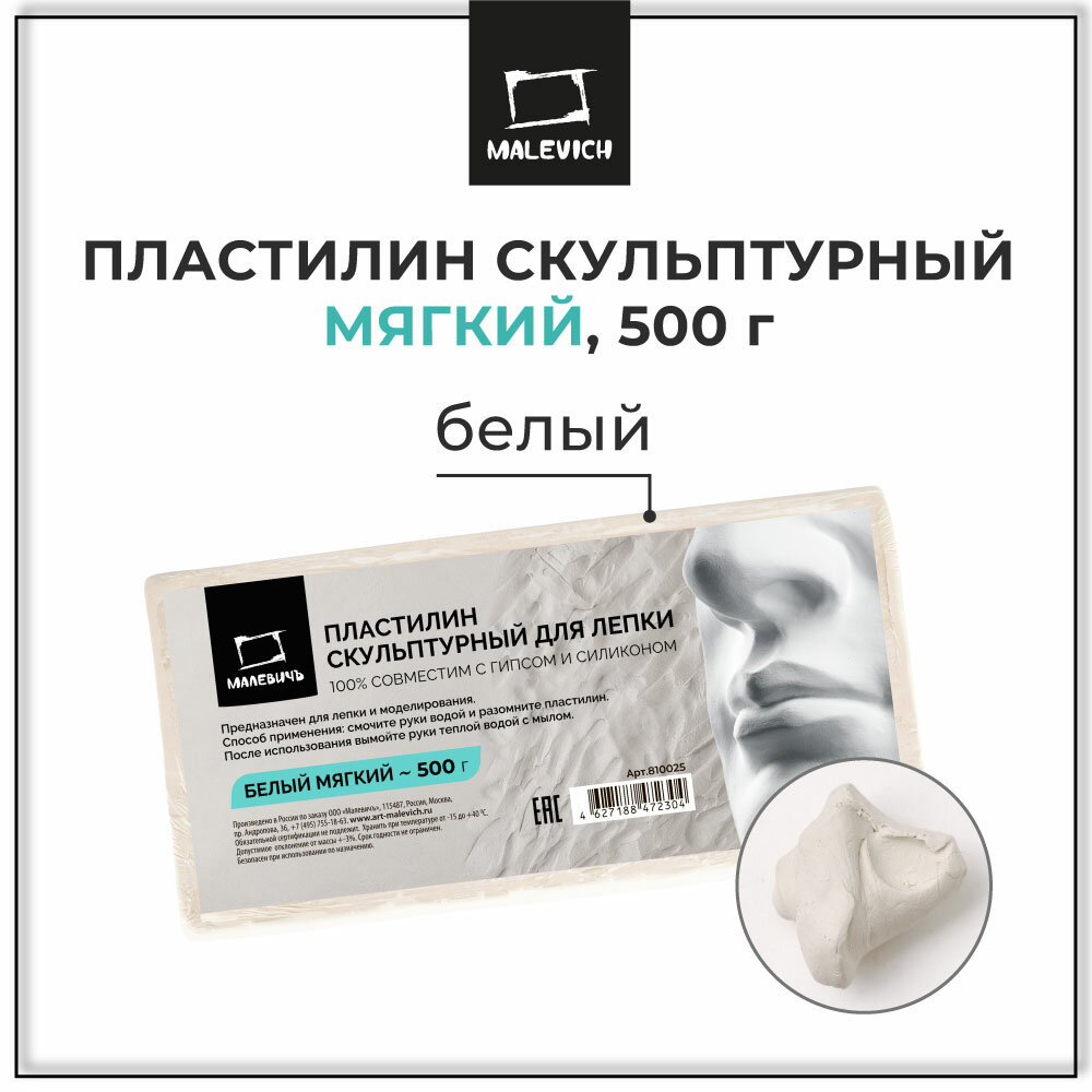 Пластилин скульптурный Малевичъ, белый, мягкий 500 г интересное: