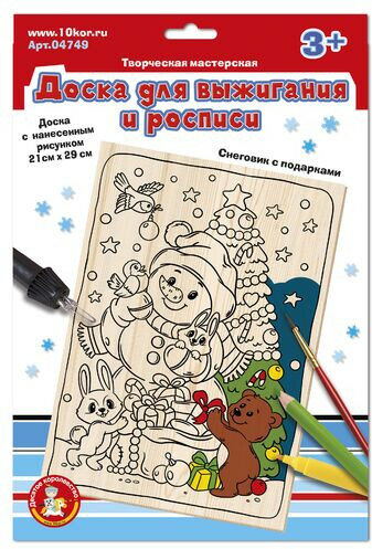 Набор для творчества Десятое королевство Доска для выжигания и росписи Снеговик с подарком 04749