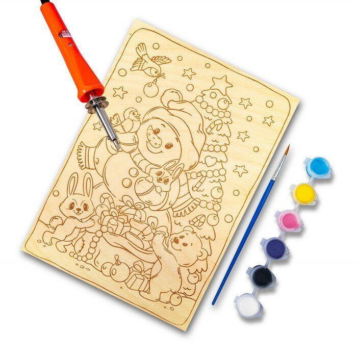 Набор для творчества Десятое королевство Доска для выжигания и росписи Снеговик с подарком 04749