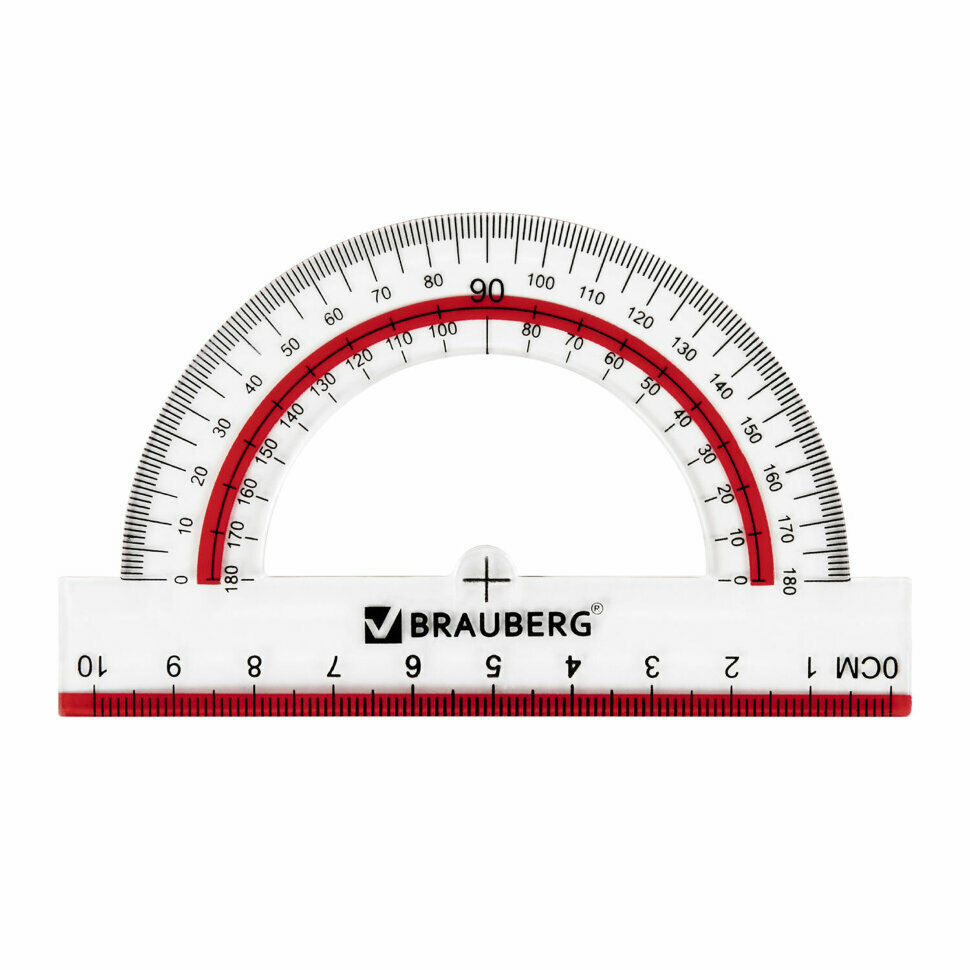 Набор чертежный для школы, геометрии большой Brauberg Crystal, линейка 30 см, 2 угольника, транспортир, выделенная шкала, 210297
