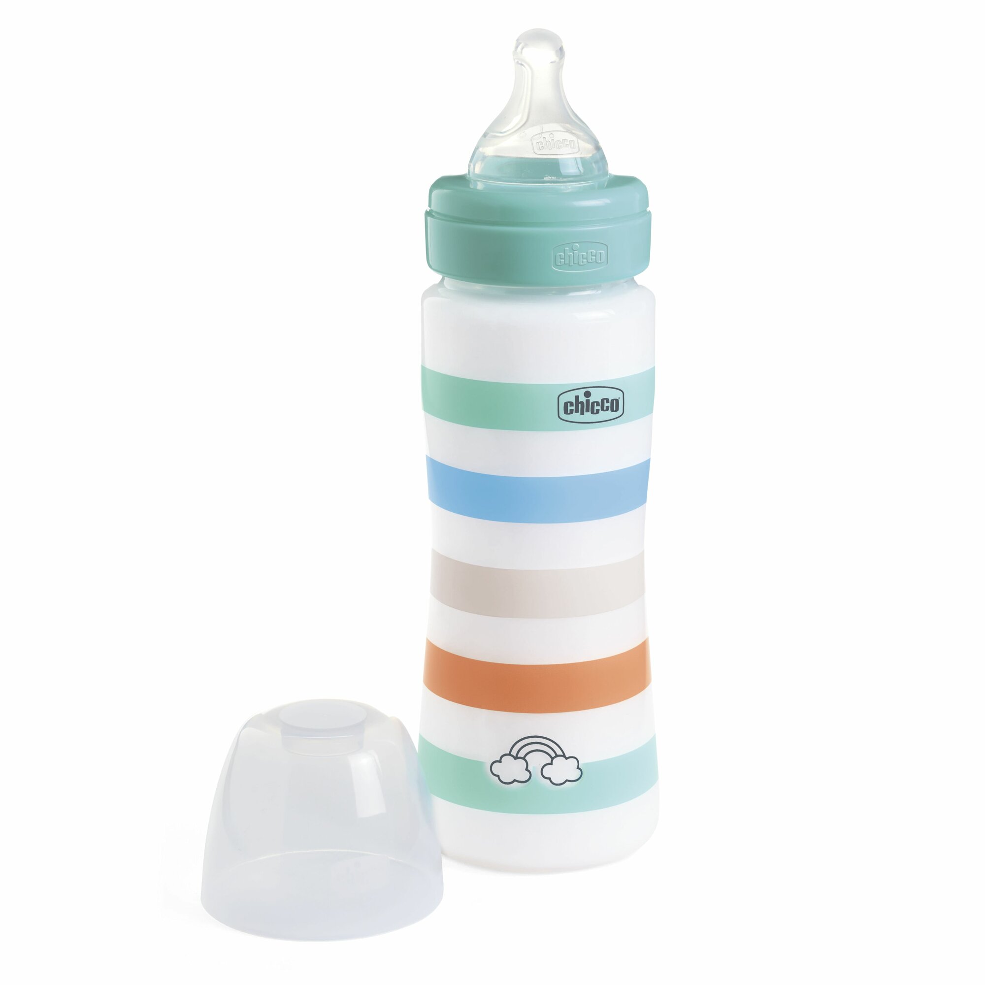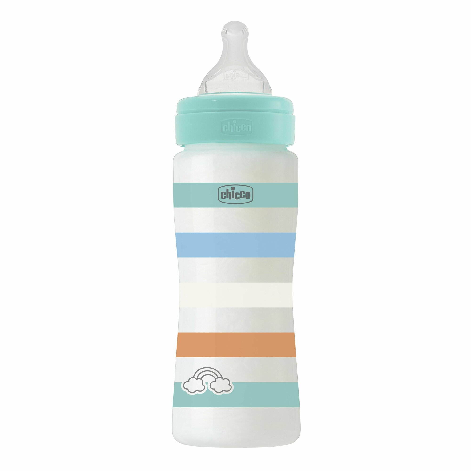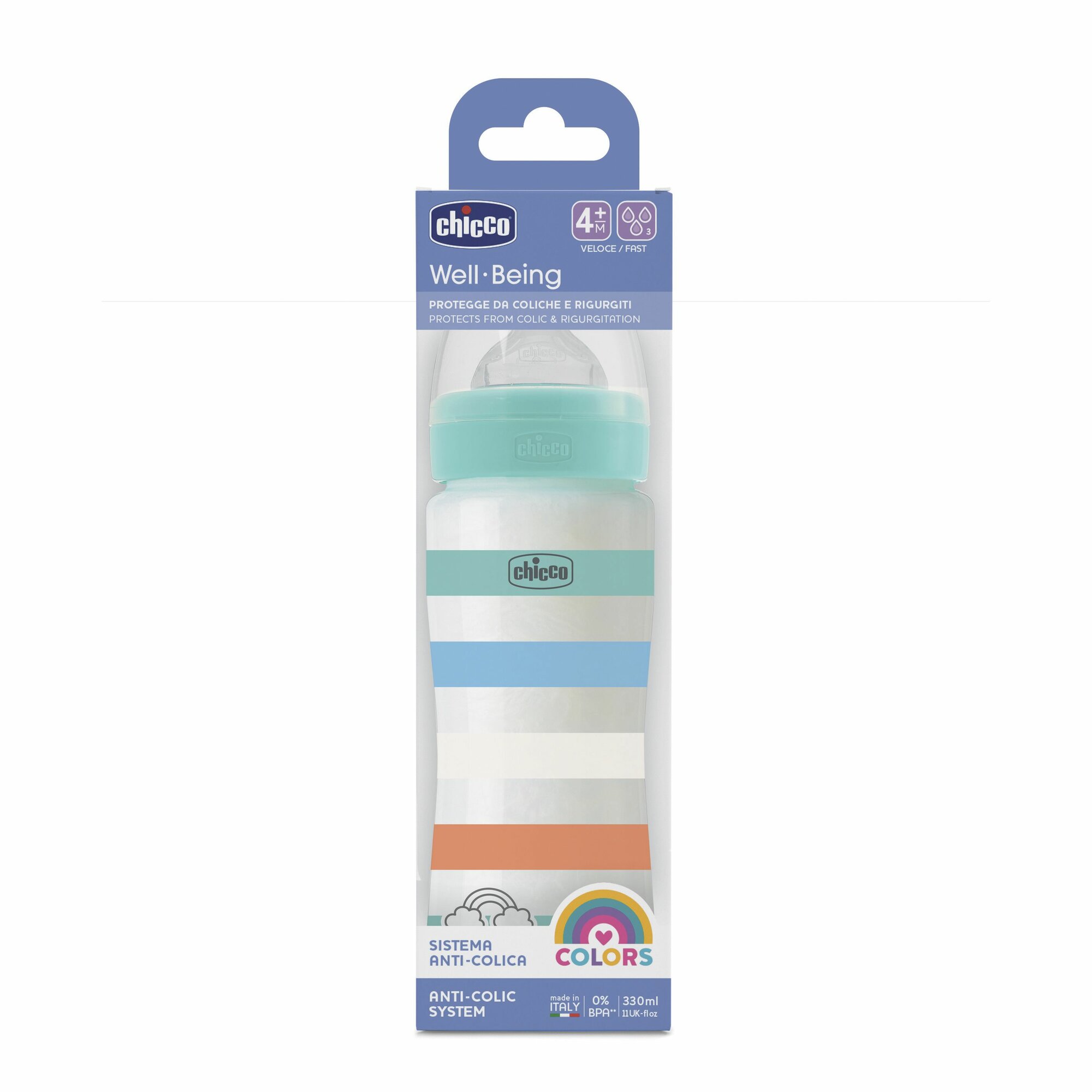 Бутылочка для кормления CHICCO Well-Being Boy 4 мес.+,сил.соска быстр.поток,РР,330мл., зеленая
