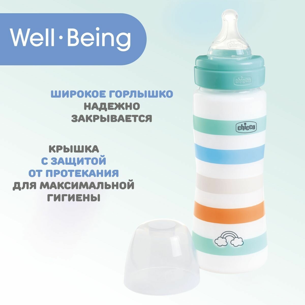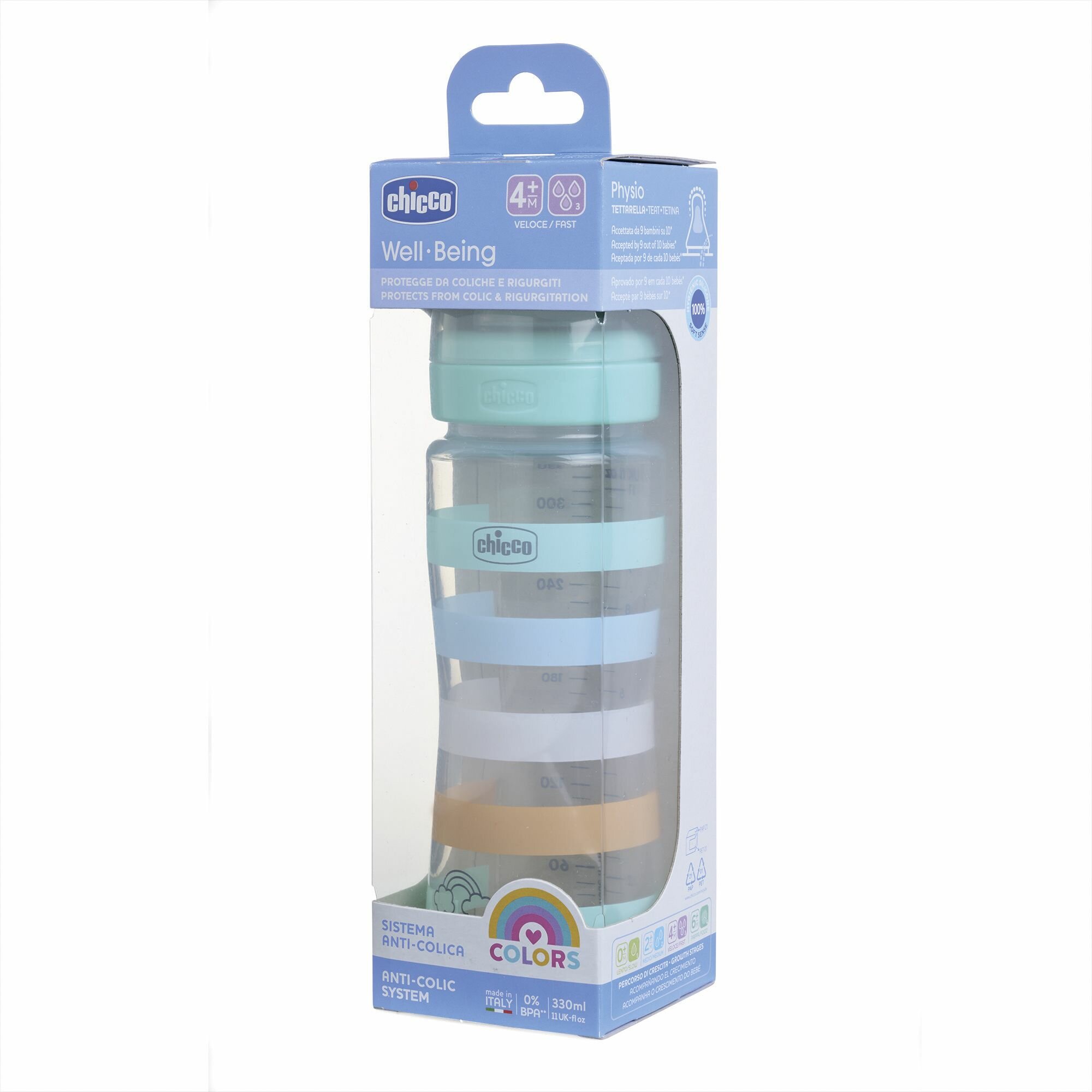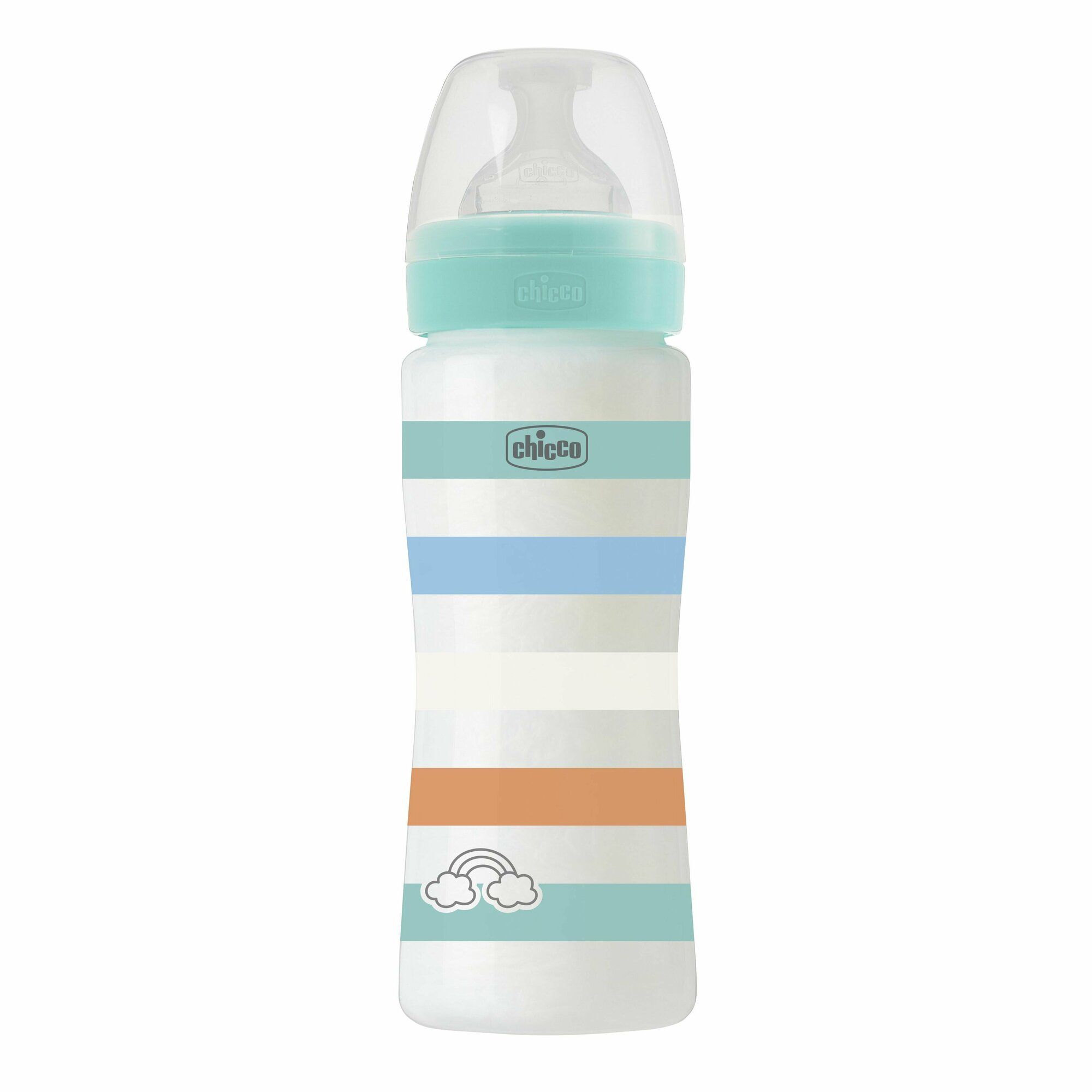 Бутылочка для кормления CHICCO Well-Being Boy 4 мес.+,сил.соска быстр.поток,РР,330мл., зеленая