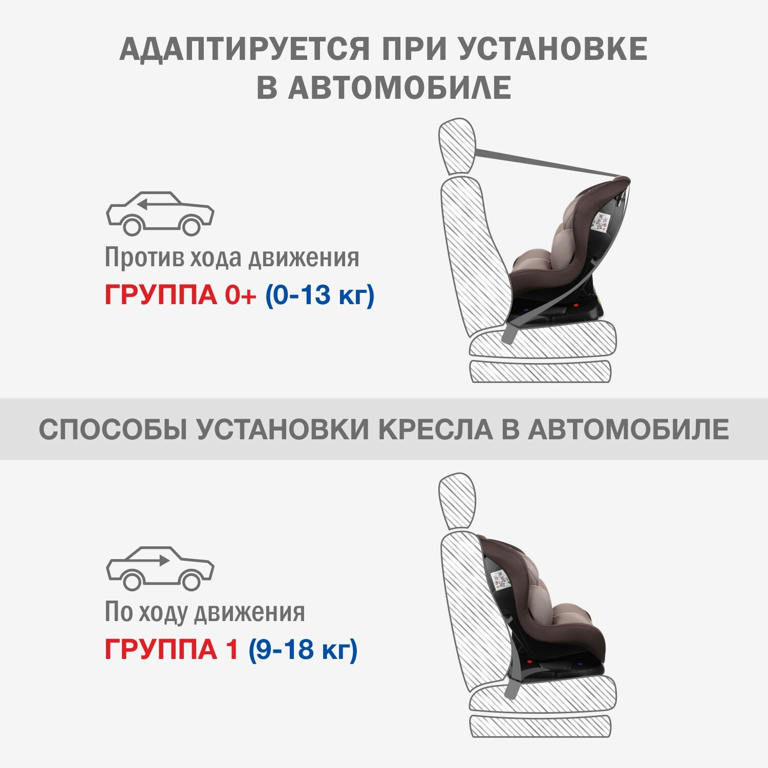 | Группа | 0/1 (до 18 кг) |