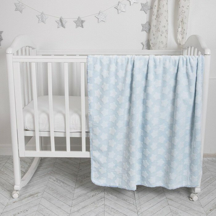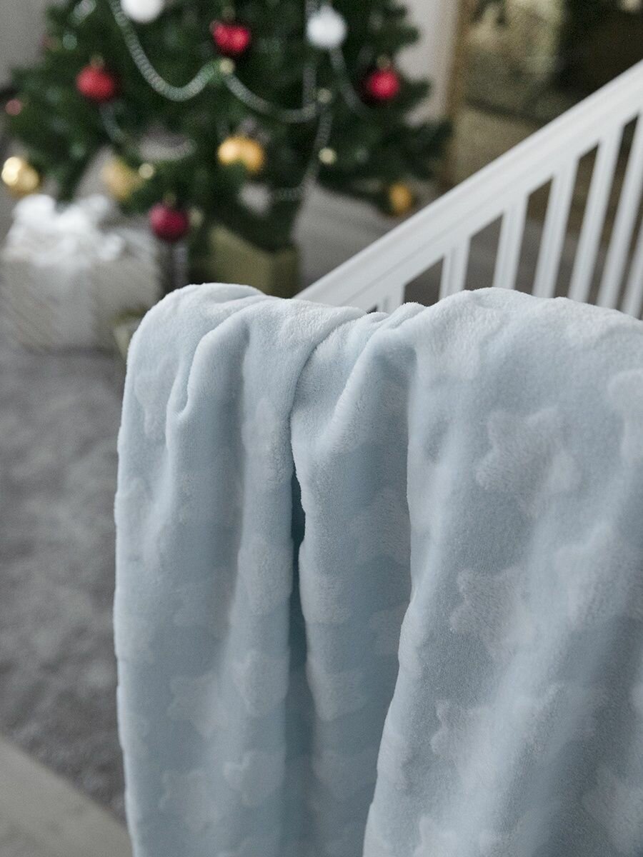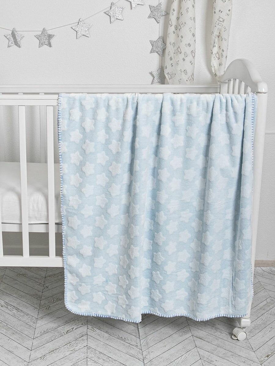 Купить Плед для новорожденного 100х140 пушистый детский на кровать "Звезды", голубой