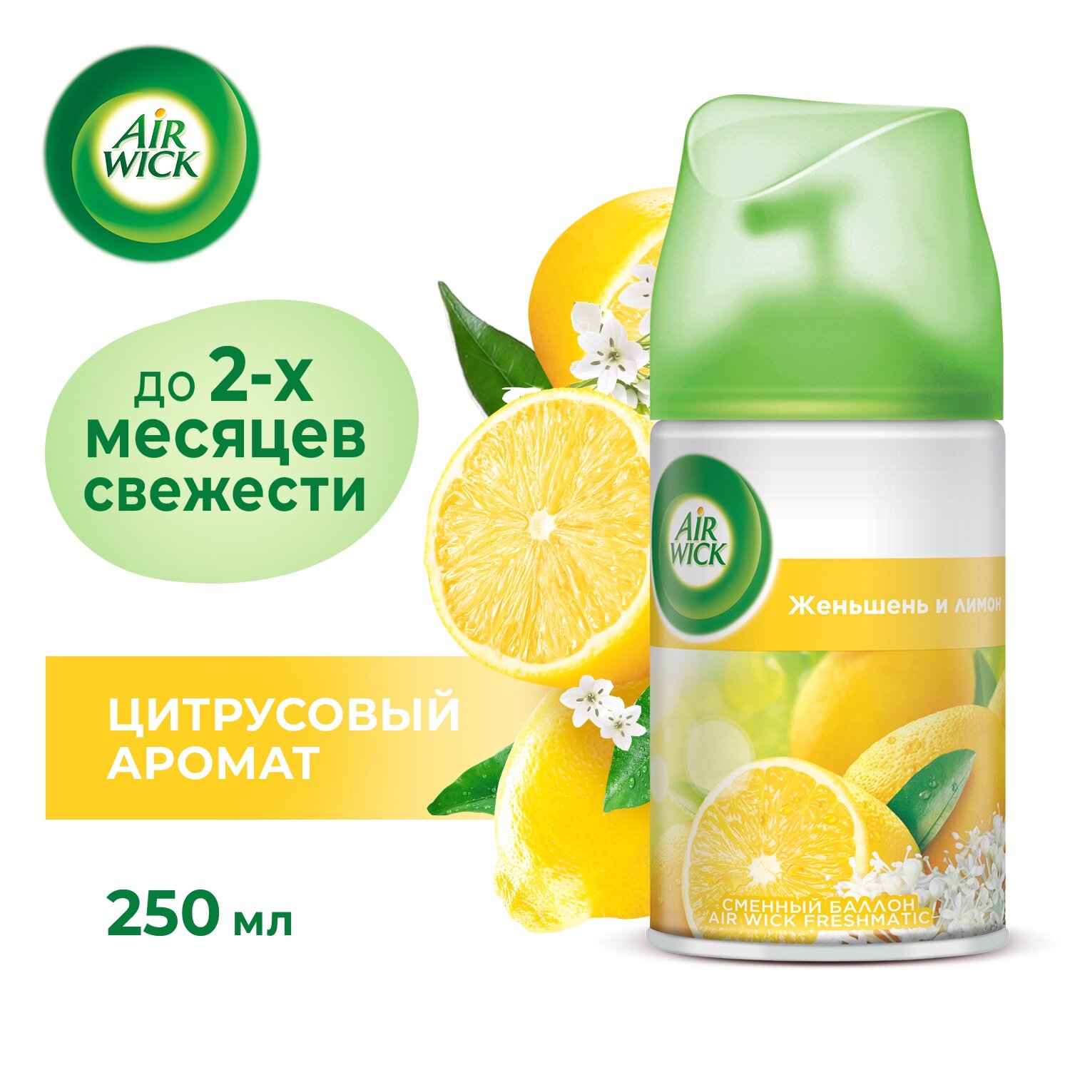 Купить Сменный баллон к автоматическому аэрозольному освежителю воздуха Air Wick Женьшень и лимон, освежитель воздуха 250 мл