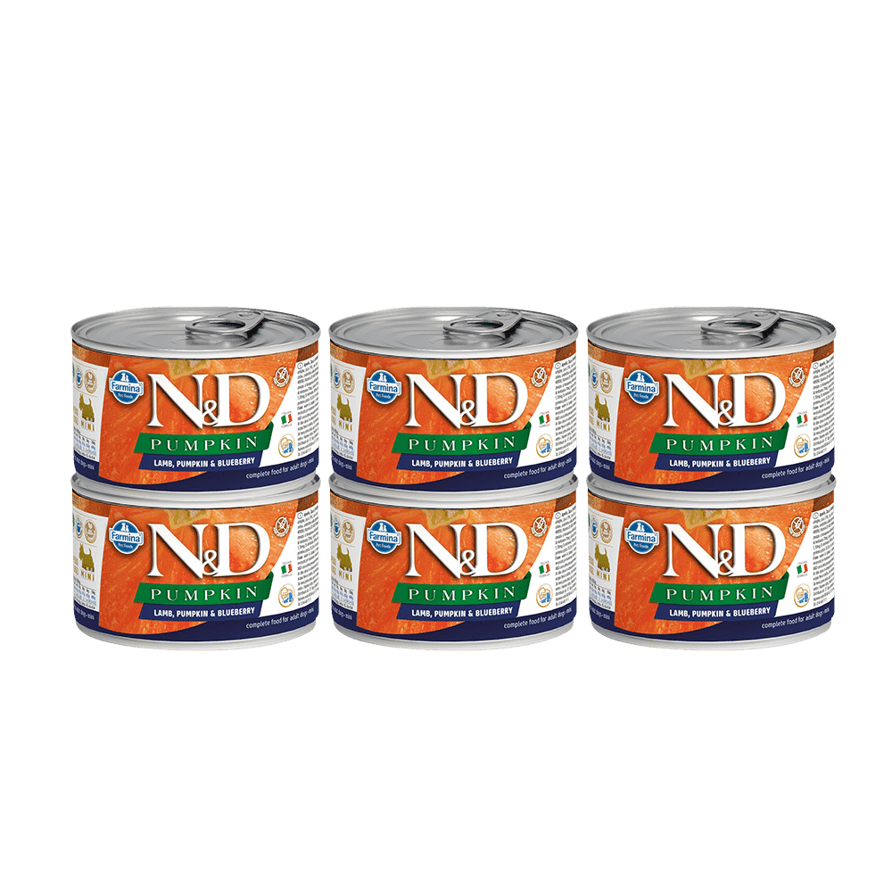 Корм для собак FARMINA N&D Pumpkin для мелких пород, тыква, ягненок и черника банка 140г*6 (упаковка из 6 шт)