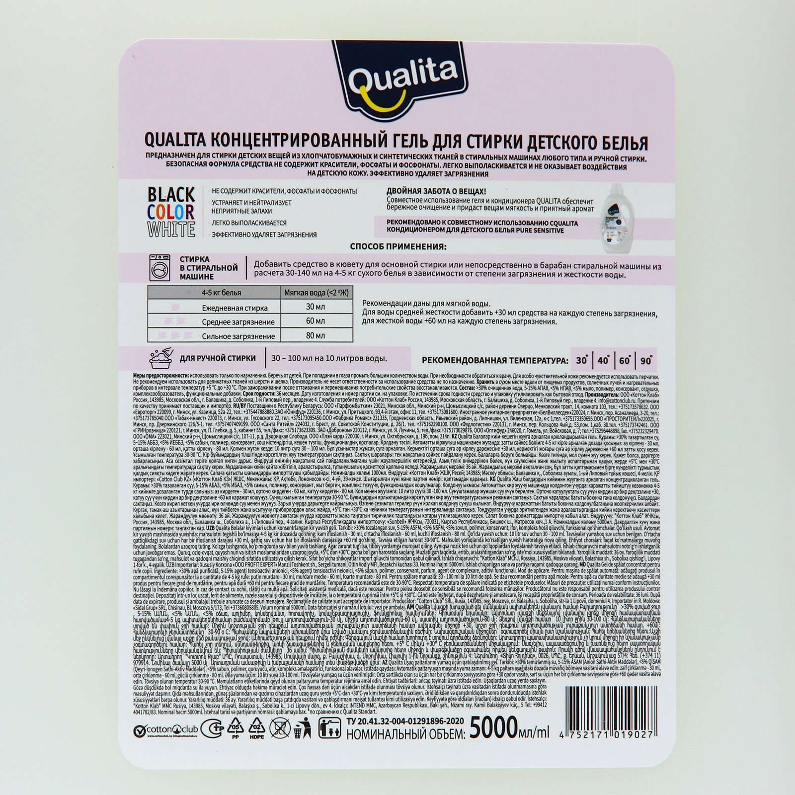 Купить Гель для стирки QUALITA для детского белья, 5л