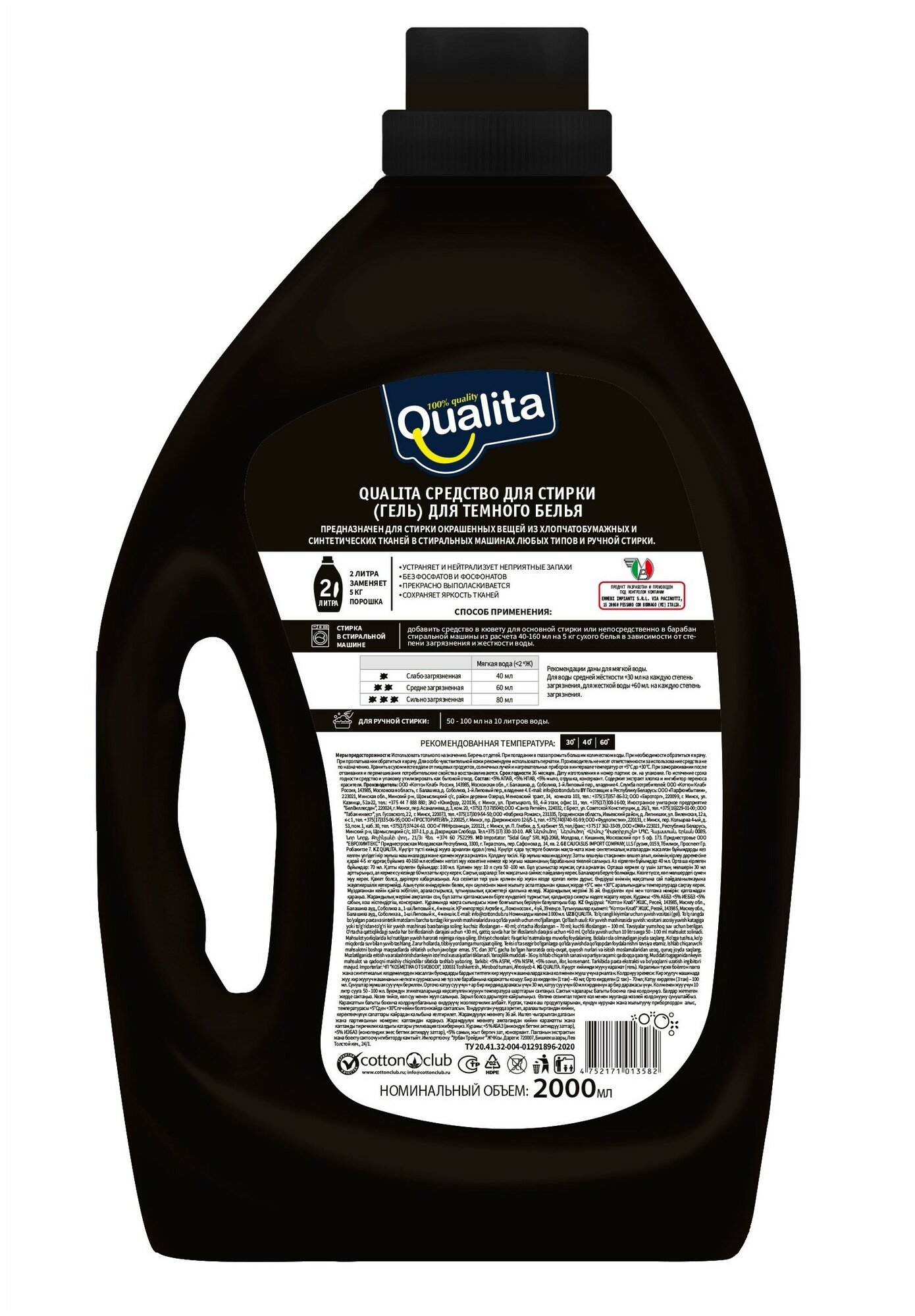 Купить Гель Qualita для стирки темного белья 2 л