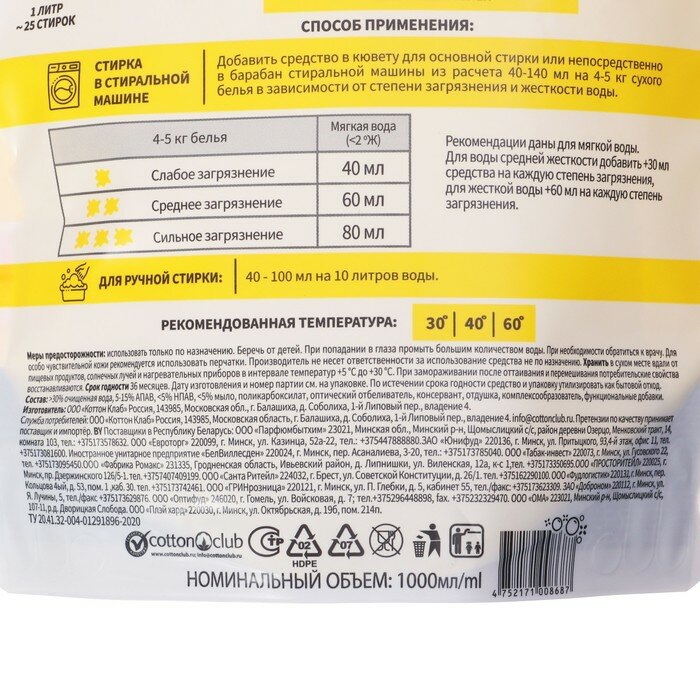 | Содержит | ПАВ / консерванты / отбеливатель |