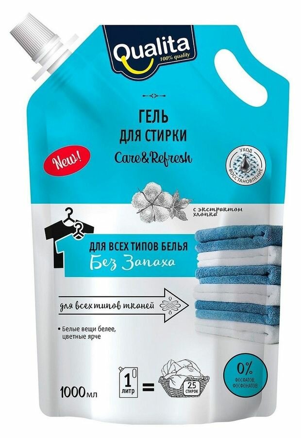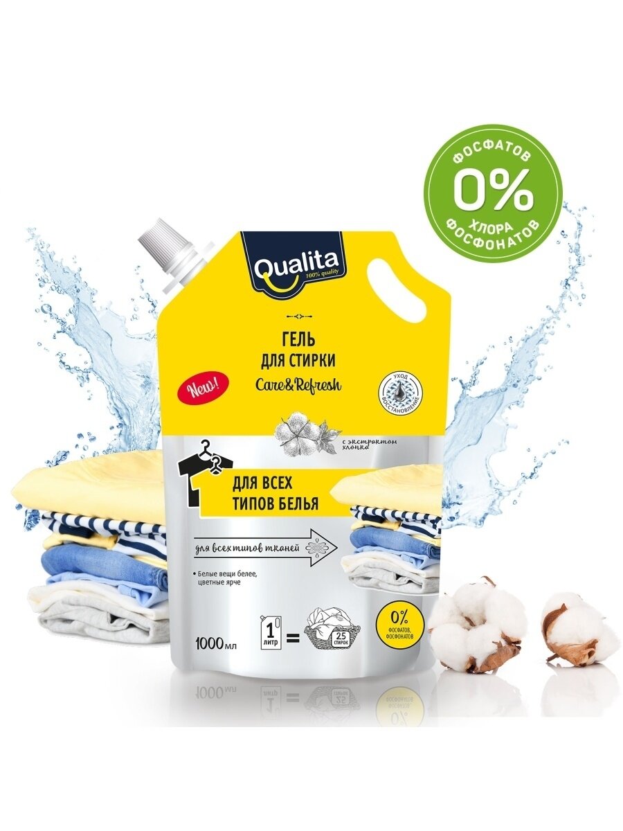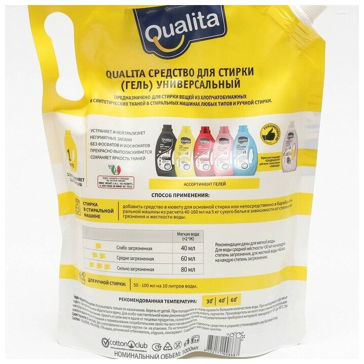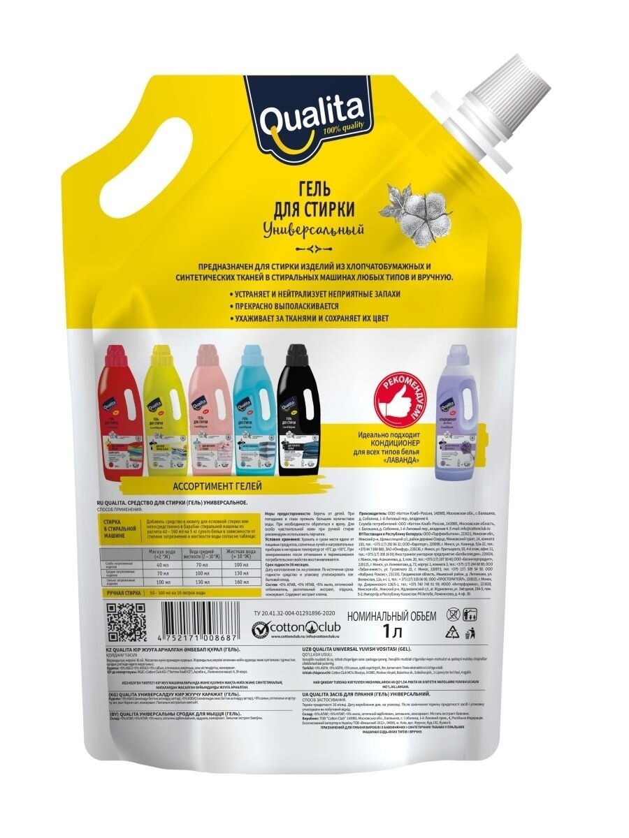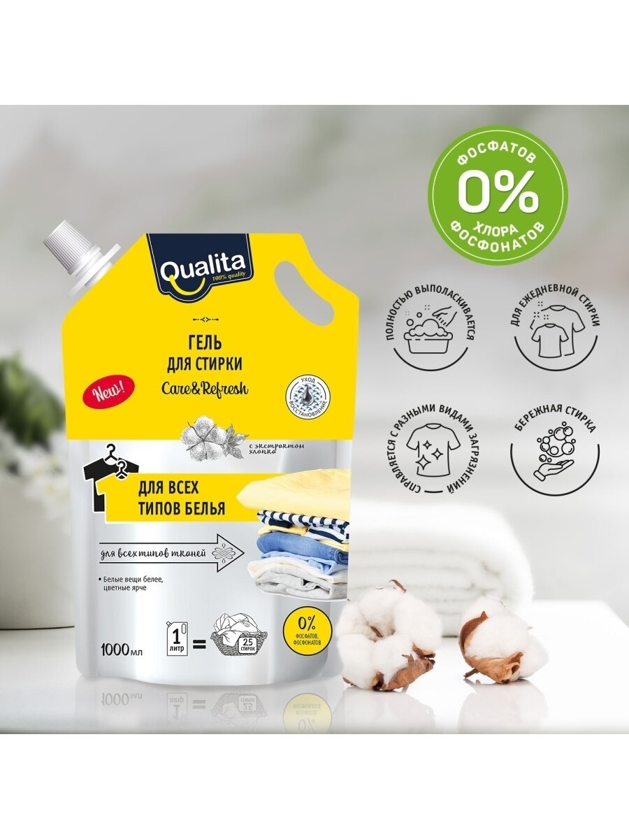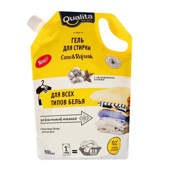 Купить Гель для стирки Qualita универсальный, 1 л, дой-пак