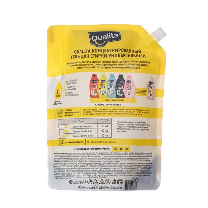 Qualita Гель для Стирки Универсальный {Дой-Пак} 25 стирок Новая Формула 1л