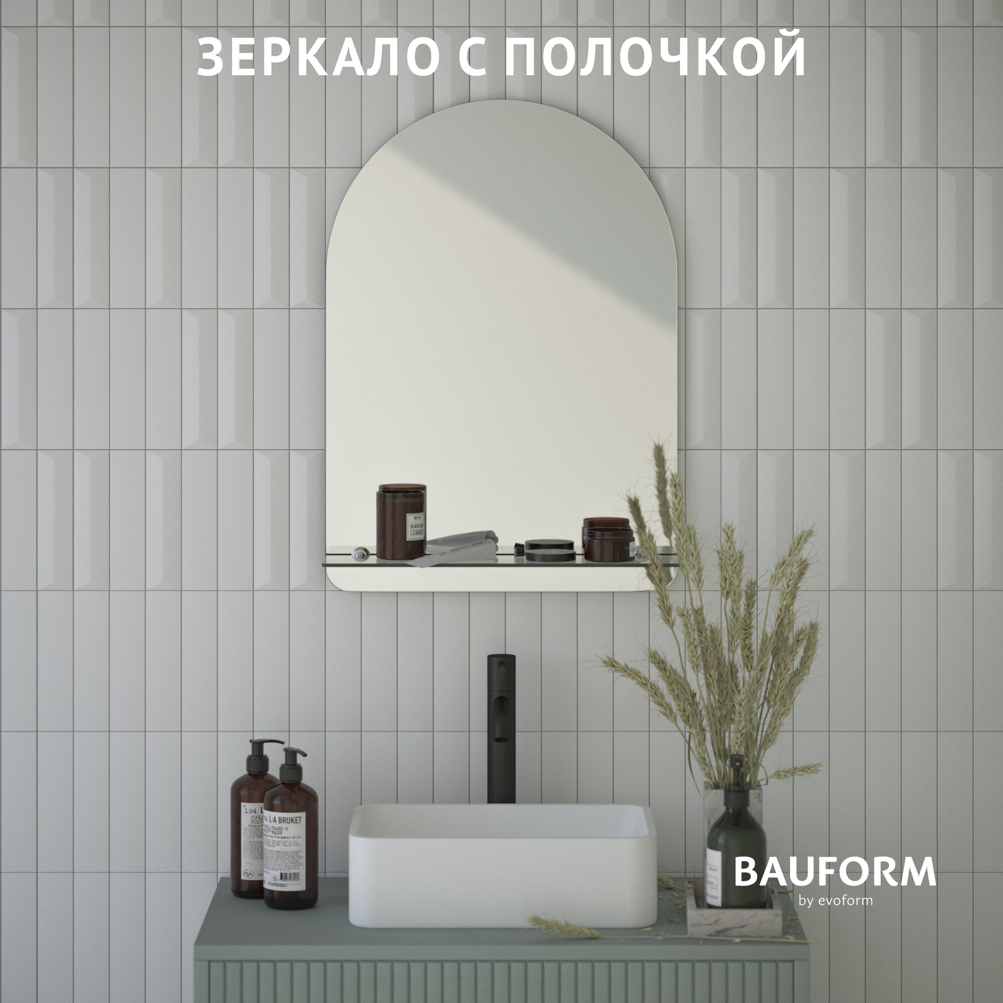 Зеркало настенное с полочкой Арка SHELF EDGE BAUFORM 40х60 см, для гостиной, прихожей, спальни, кабинета и ванной комнаты, SP 9492