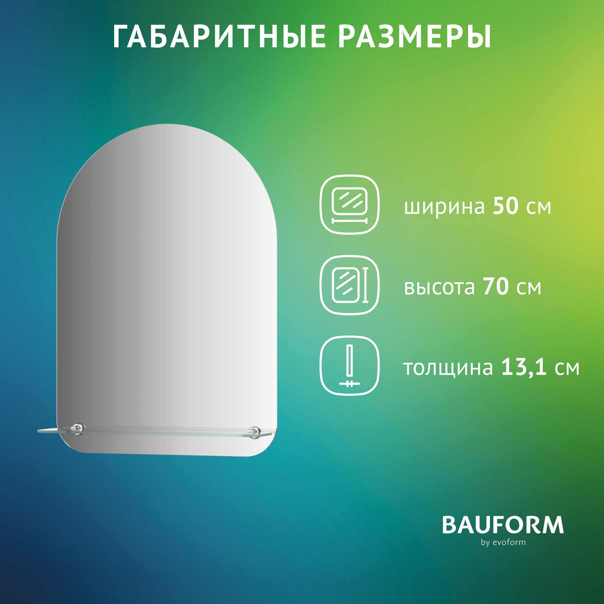 Зеркало настенное с полочкой Арка SHELF EDGE BAUFORM 60х70 см, для гостиной, прихожей, спальни, кабинета и ванной комнаты, SP 9488