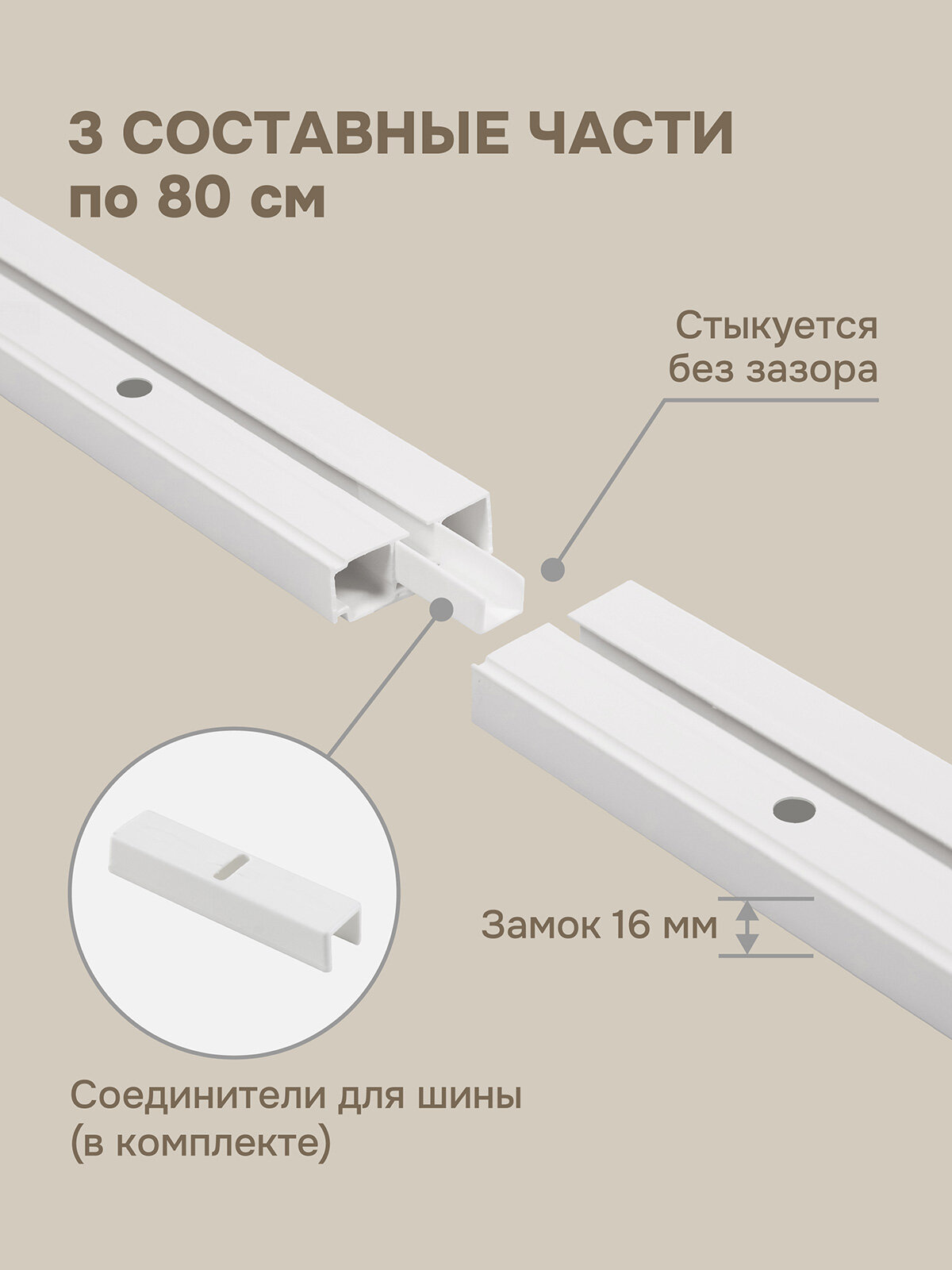 Карниз для штор трехрядный, "Эскар", составной (3 части), пластик, длина 240 см, белый
