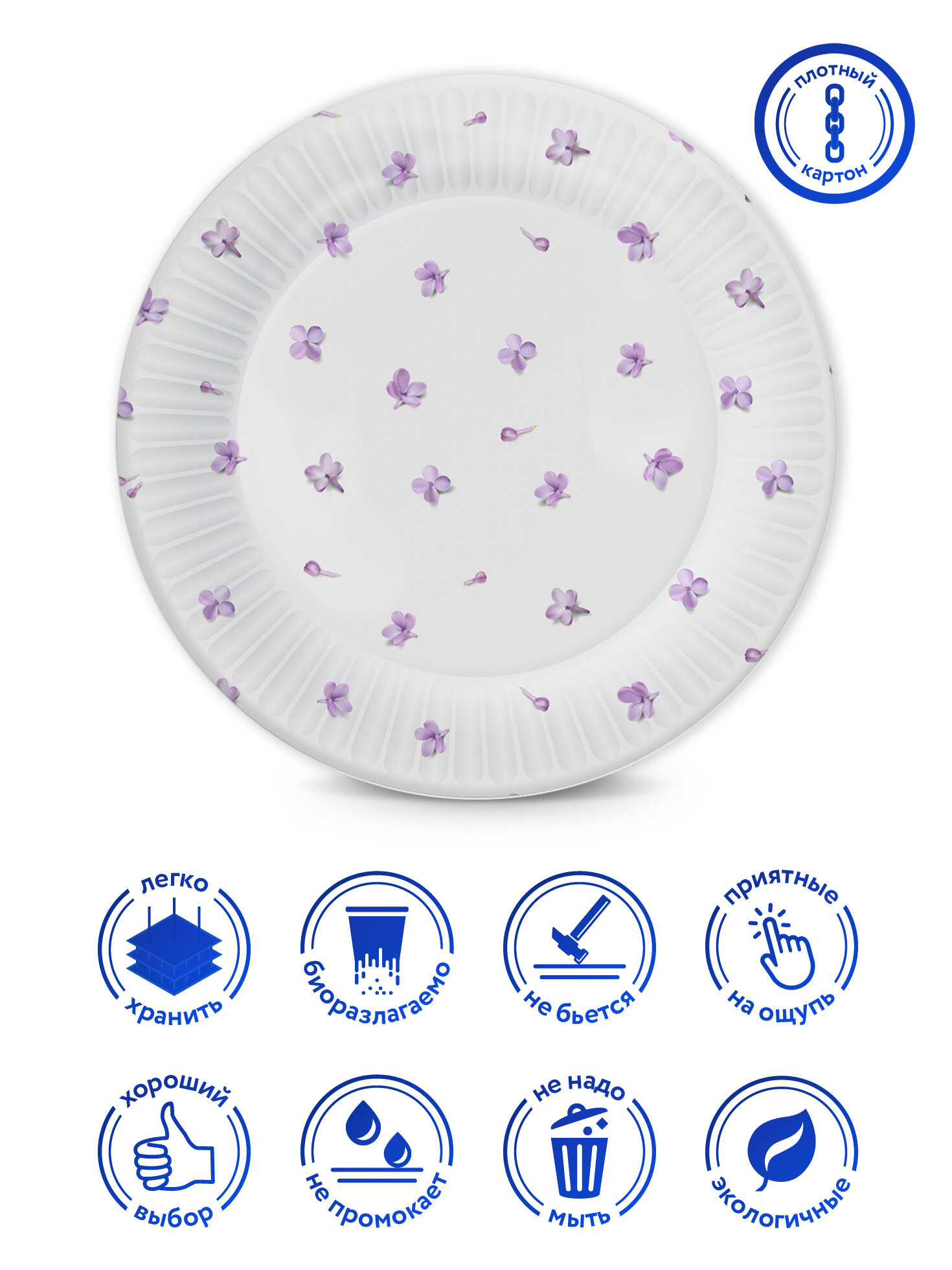 Набор бумажных тарелок Сирень, 6 шт d=180 мм интересное: