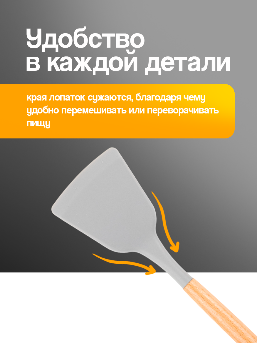 | Состав набора | венчик / кисть кулинарная / ложка для спагетти / ложка поварская / лопатка / половник / шумовка / щипцы |