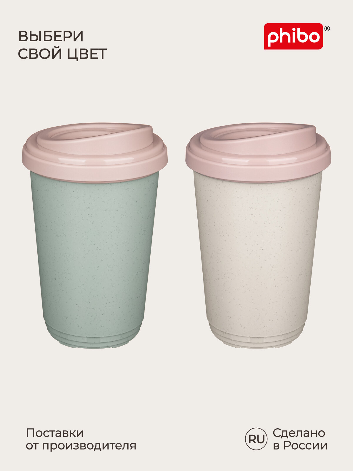 phibo Термостакан пластиковый, 400 мл, d=9,8 см, h=15,6 см, микс