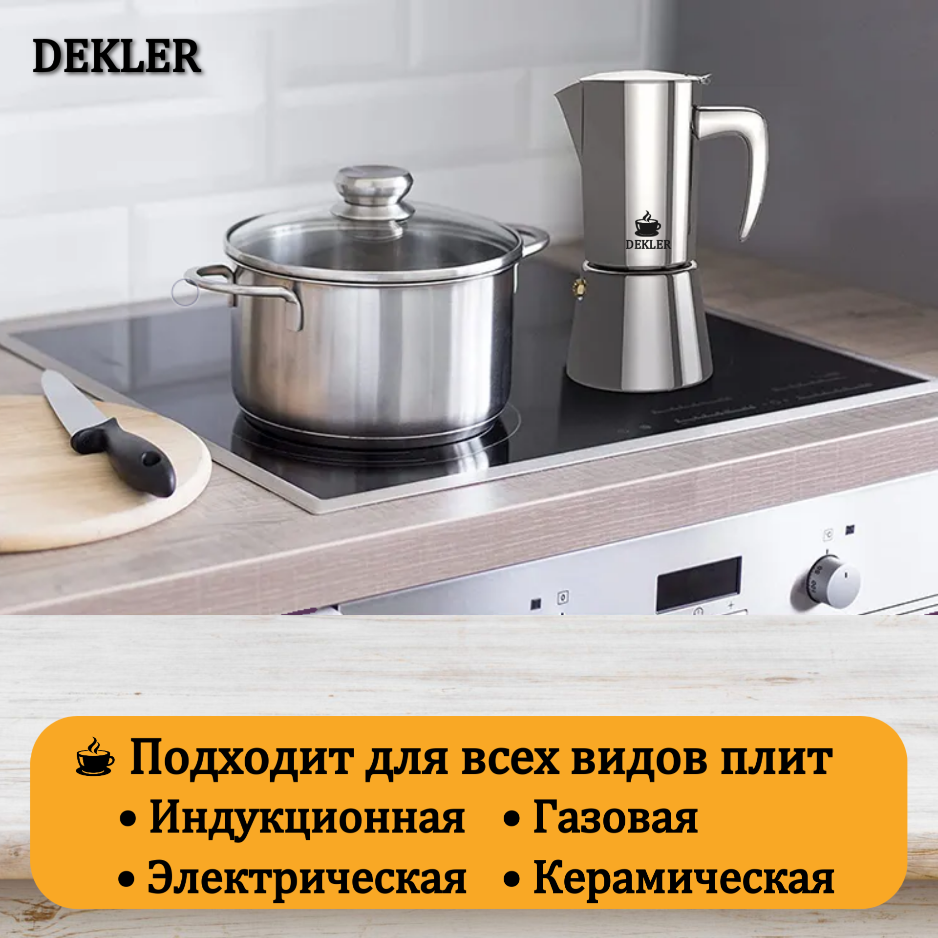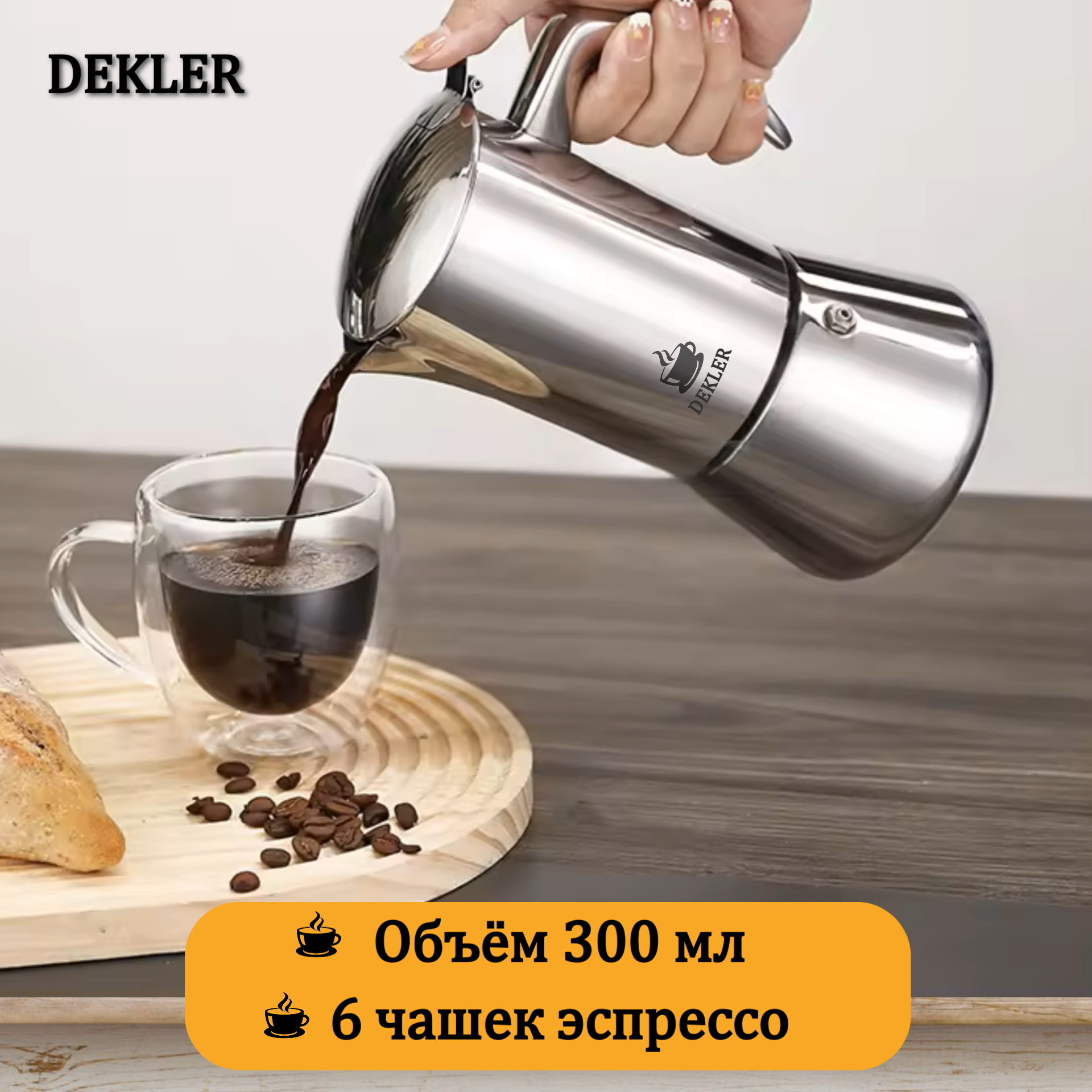 Гейзерная кофеварка Dekler Viva STL-300 для всех видов плит, объем 300 мл. интересное:
