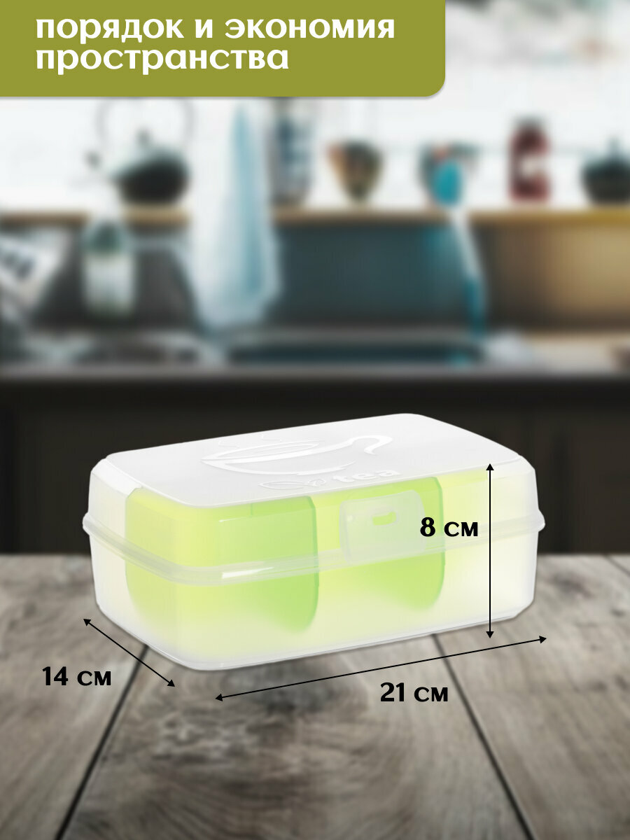 Контейнер для чайных пакетов Hobby Life, 14х21х8см, пластик, прозрачный/зеленый интересное: