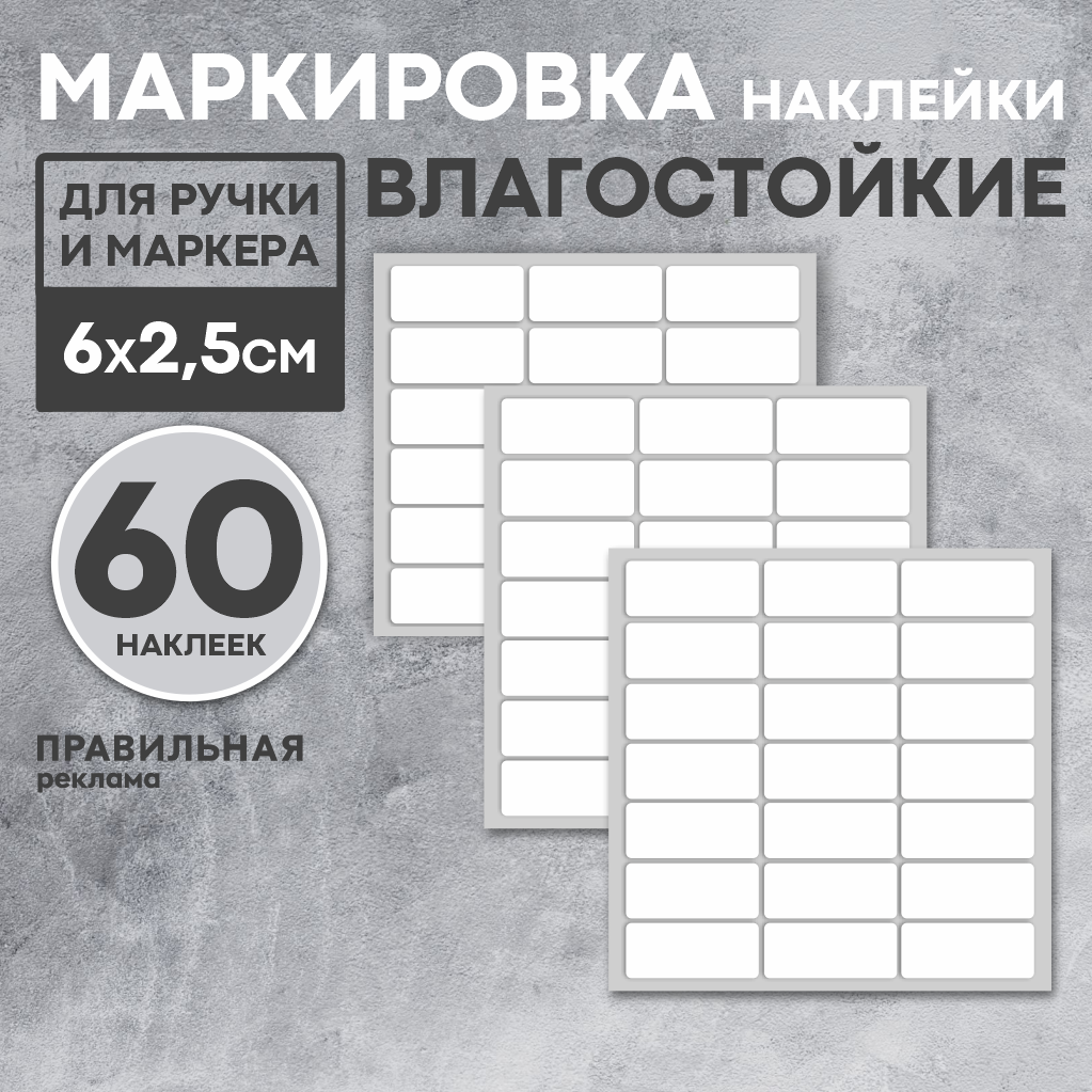 Наклейки для самостоятельной маркировки контейнеров, коробок, банок; 60шт 6х2,5 см прямоугольные. Этикетки белые матовые, влагостойкие интересное: