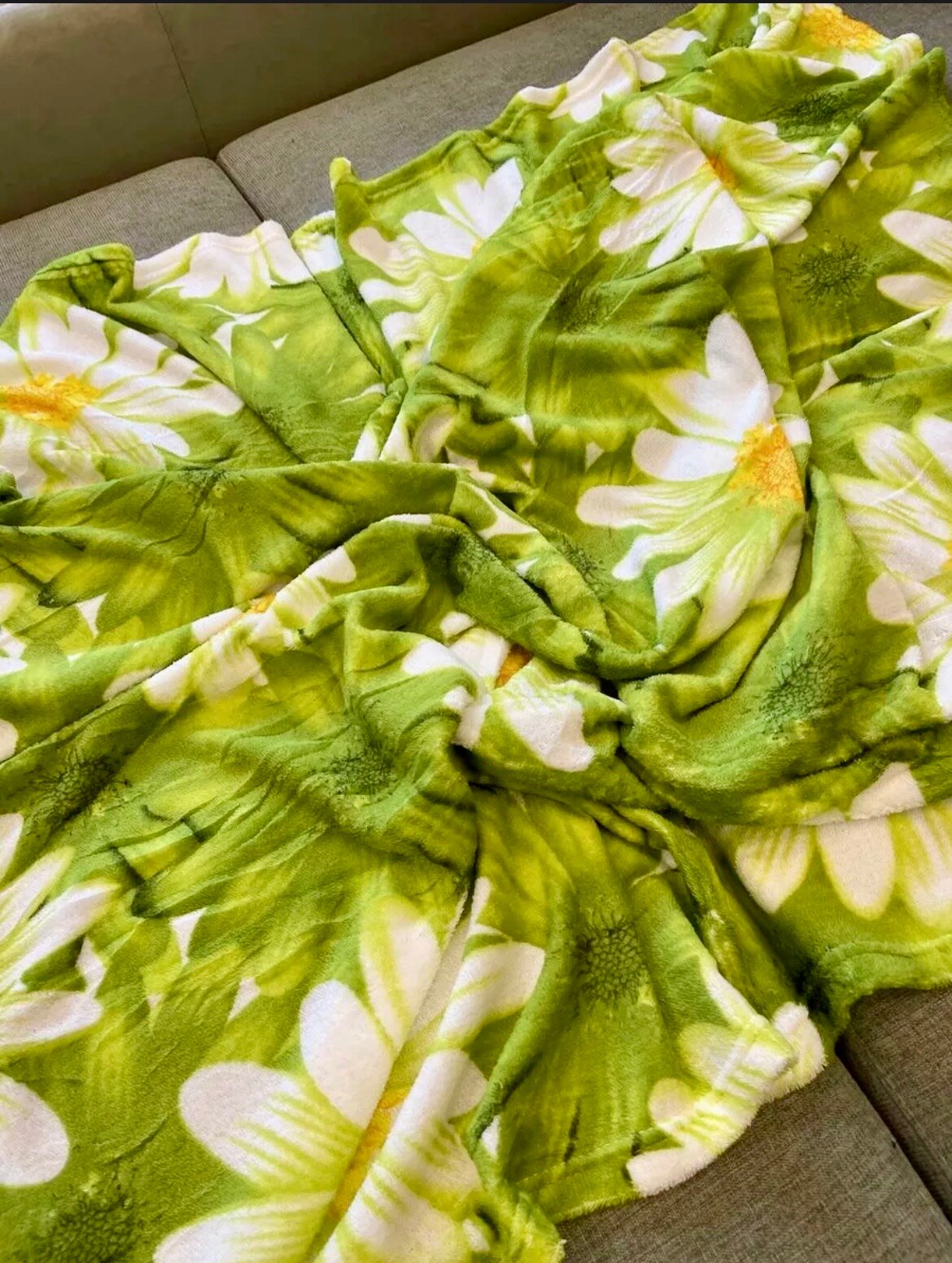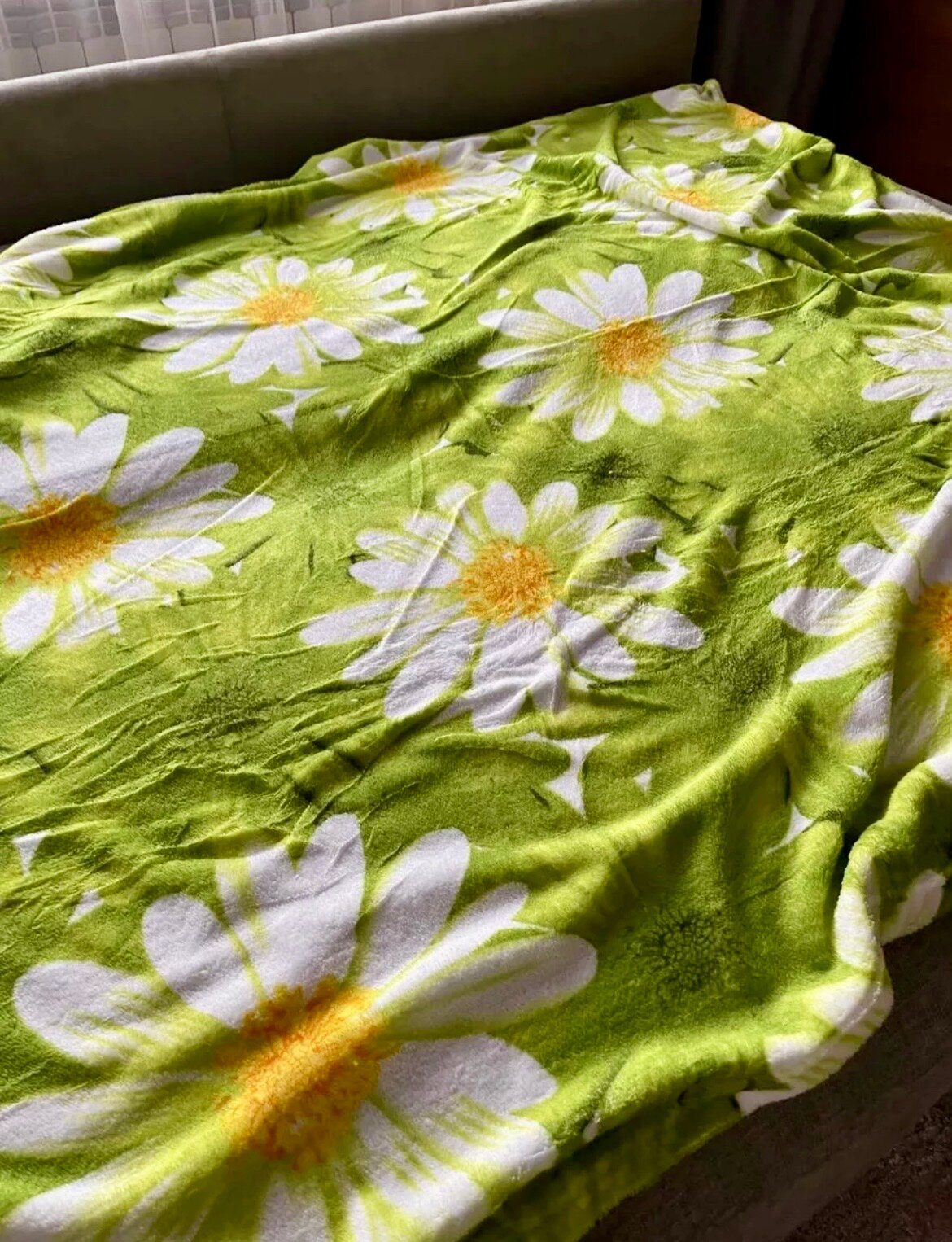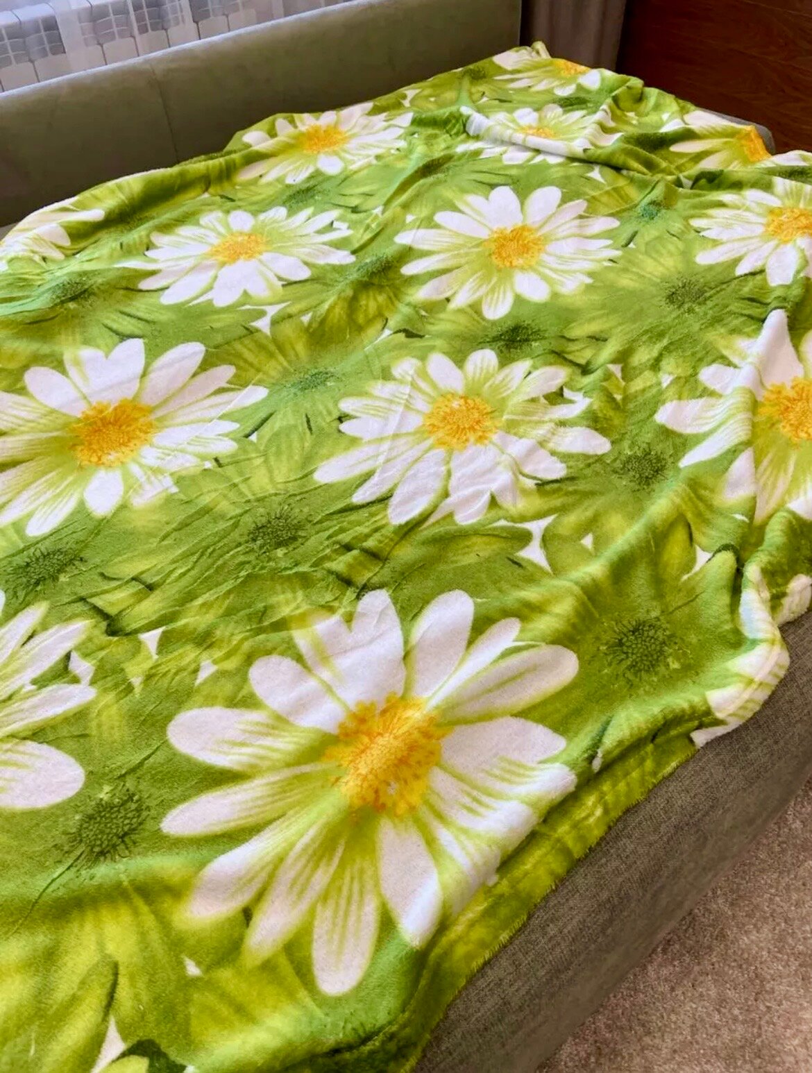 Плюшевый плед Ромашка 180x200см, 2-спальный, мягкий, тонкий, теплый, зеленое покрывало