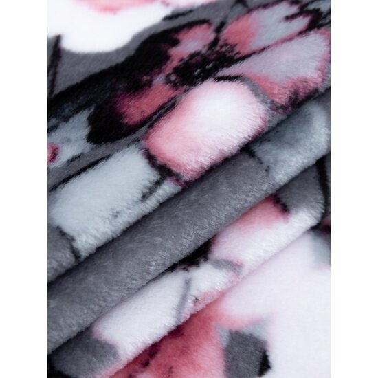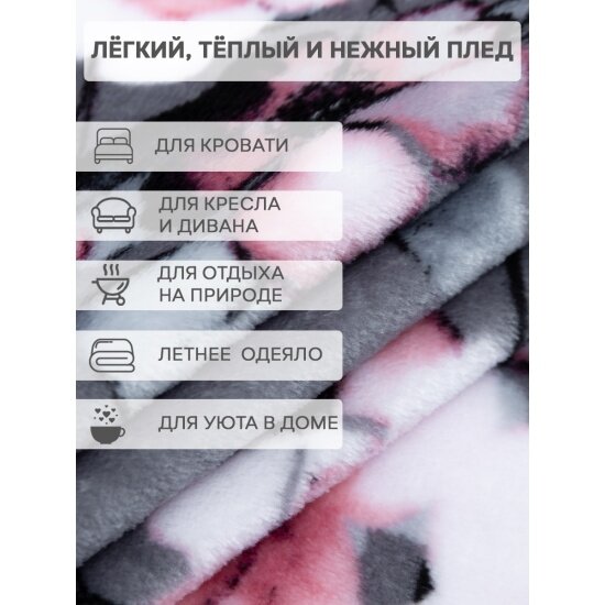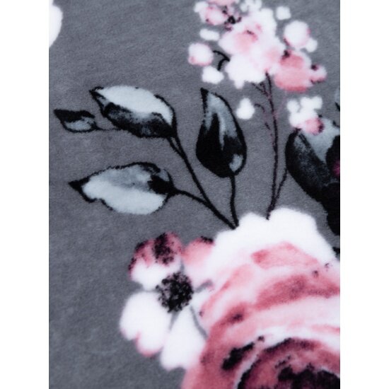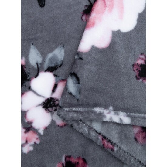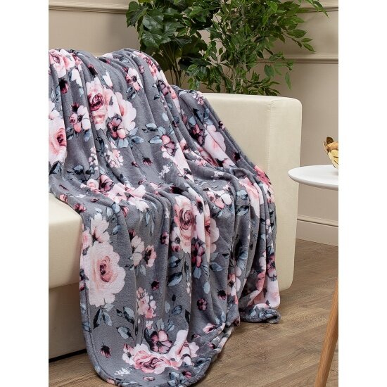 Плед TexRepublic Absolute 150х200 см, 1,5 спальный, велсофт, покрывало на диван, теплый, мягкий, серый, розовый с принтом розы