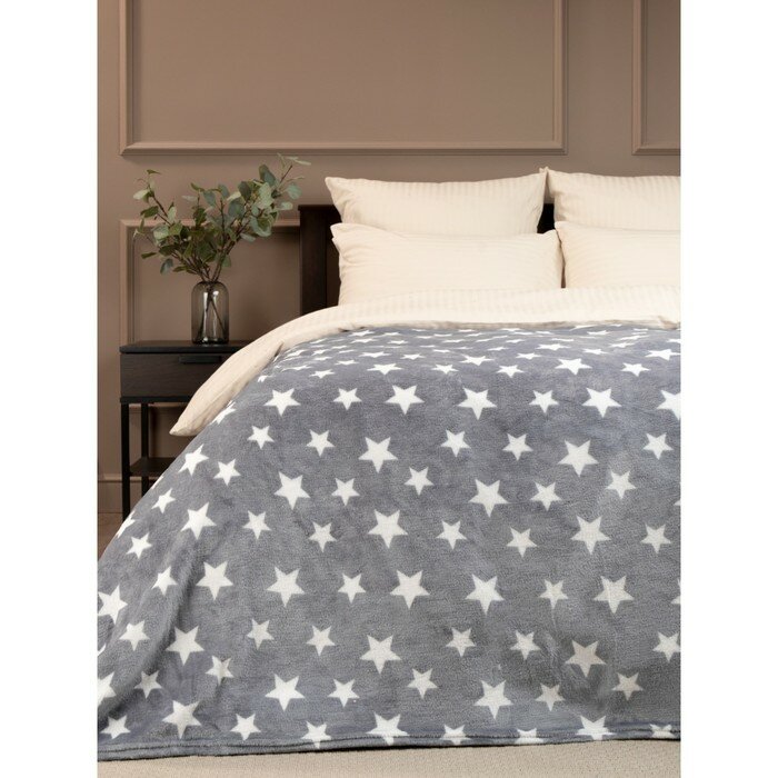 Купить Плед TexRepublic Absolute 180х200 см, 2 спальный, велсофт, покрывало на кровать, теплый, мягкий, серый, белый с рисунком Звезды