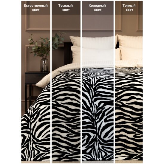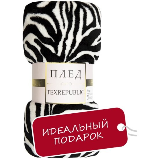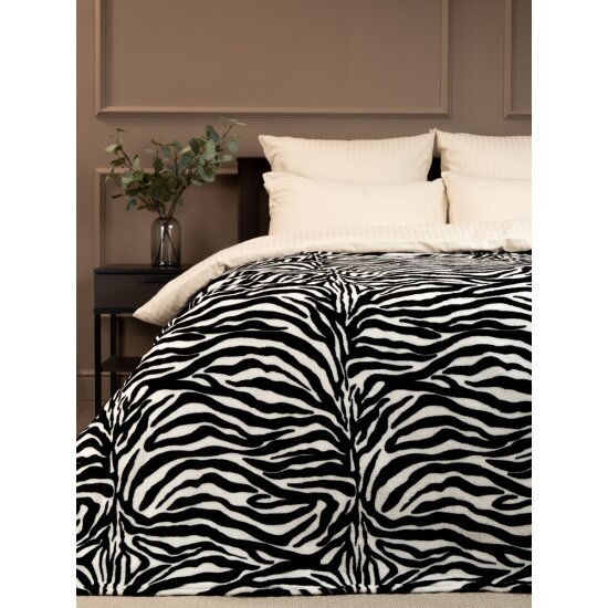 Плед TexRepublic Absolute 180х200 см, 2 спальный, велсофт, покрывало на диван, теплый, мягкий, черно-белый, с принтом Зебра