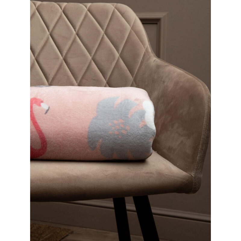 Плед TexRepublic Absolute Фламинго Фланель 140х200 см покрывало на диван кровать с рисунком для девочки , накидка на кресло Розовый / серый