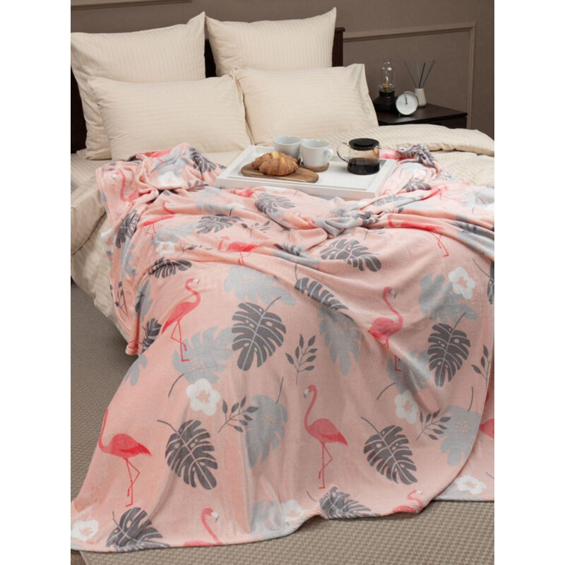 Плед TexRepublic Absolute Фламинго Фланель 1,5 сп. Розовый/серый, 1998649