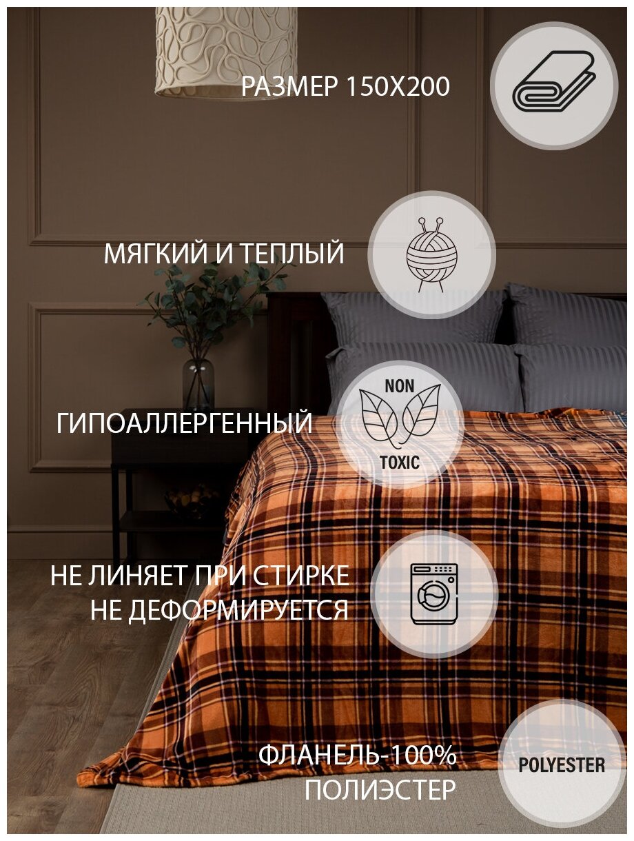 Плед TexRepublic Absolute 180х200 см, 2 спальный, фланель, покрывало на диван, теплый, мягкий, коричневый в клетку