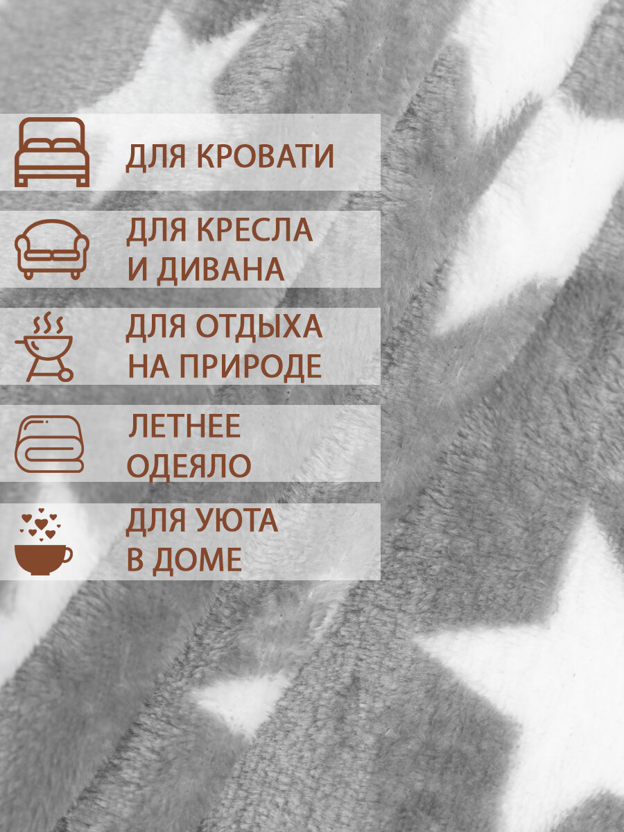 Плед TexRepublic Absolute 180х200 см, 2 спальный, велсофт, покрывало на кровать, теплый, мягкий, серый, белый с рисунком Звезды